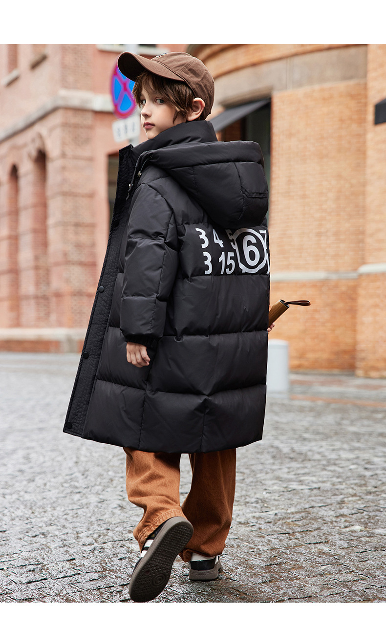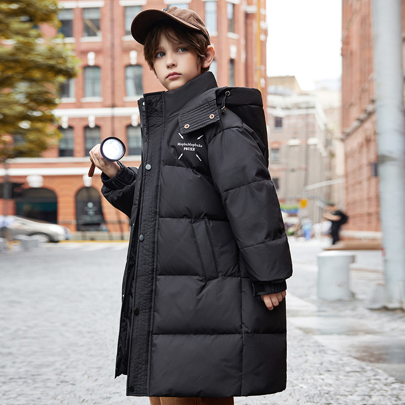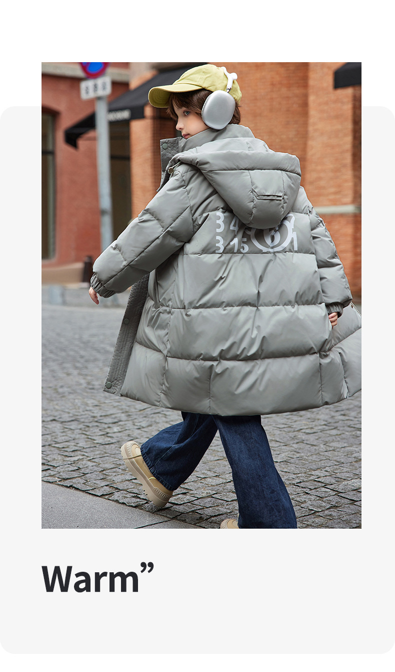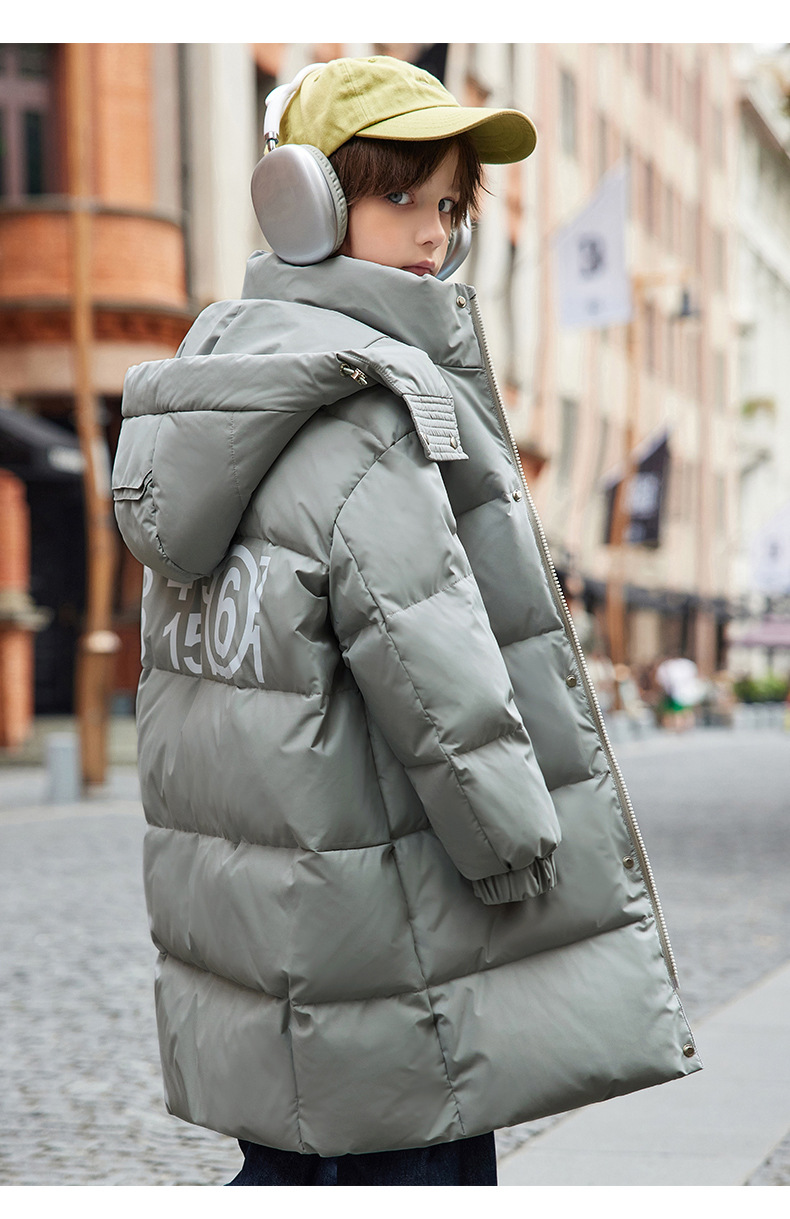새로운 어린이 ABC 중형 및 대형 어린이 흰색 오리 다운 재킷 소년 겨울 두꺼운 중간 길이 무릎 위 스타일 재킷스토어 가기