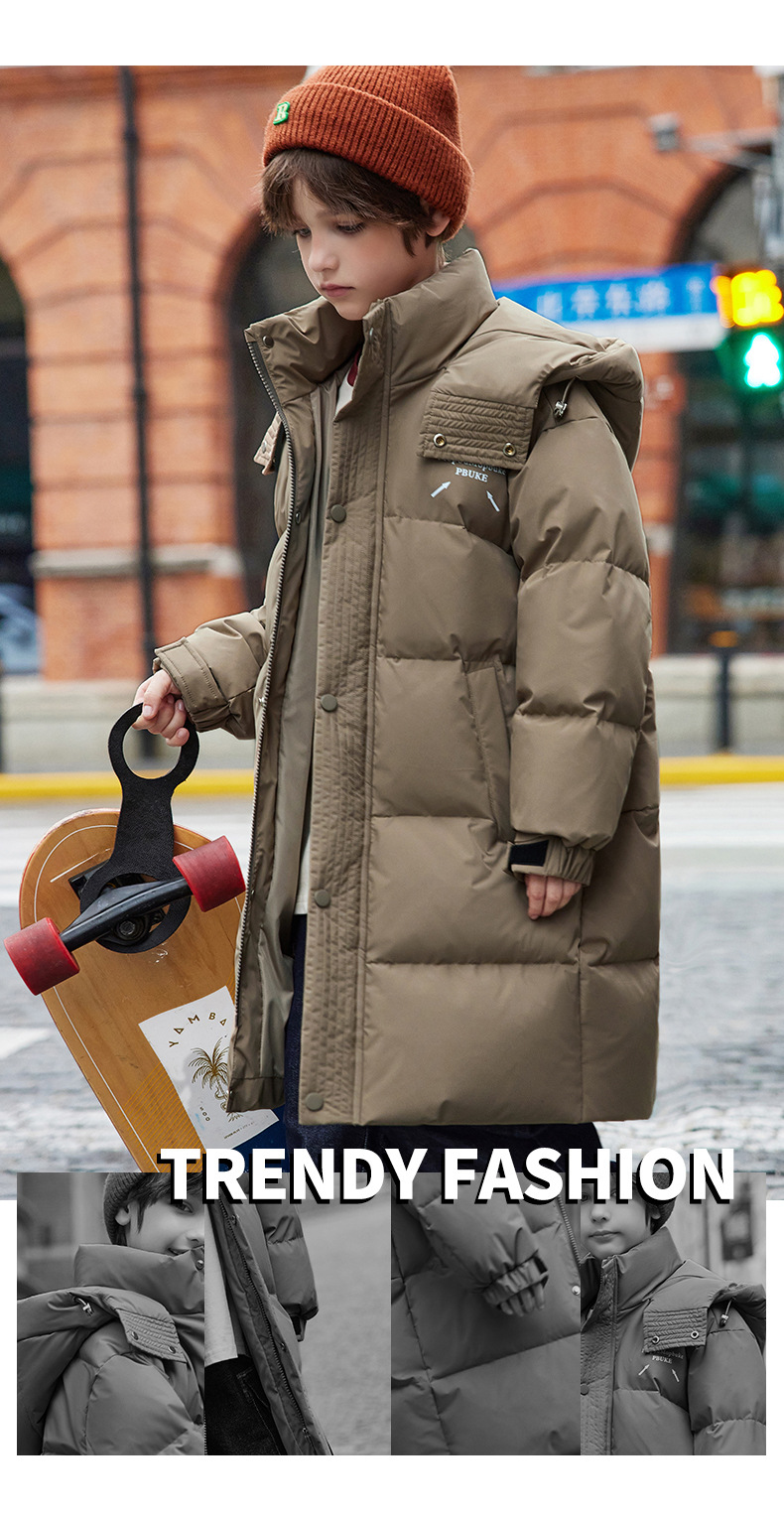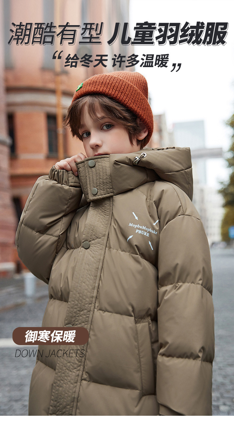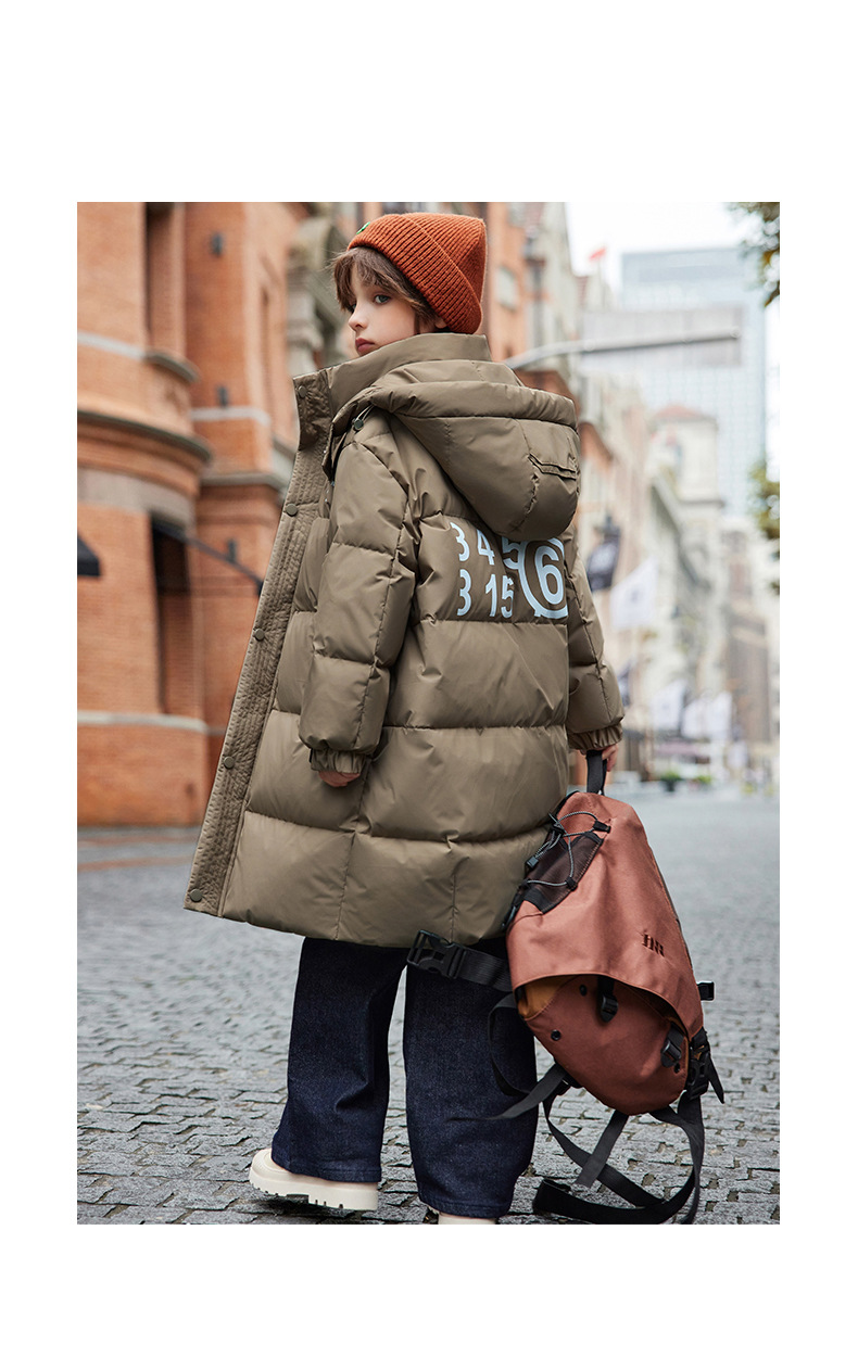 새로운 어린이 ABC 중형 및 대형 어린이 흰색 오리 다운 재킷 소년 겨울 두꺼운 중간 길이 무릎 위 스타일 재킷스토어 가기