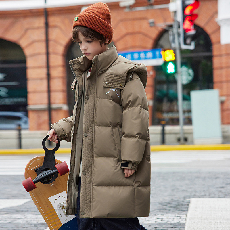새로운 어린이 ABC 중형 및 대형 어린이 흰색 오리 다운 재킷 소년 겨울 두꺼운 중간 길이 무릎 위 스타일 재킷