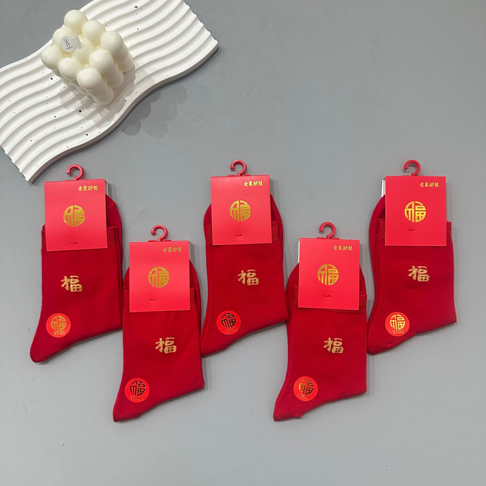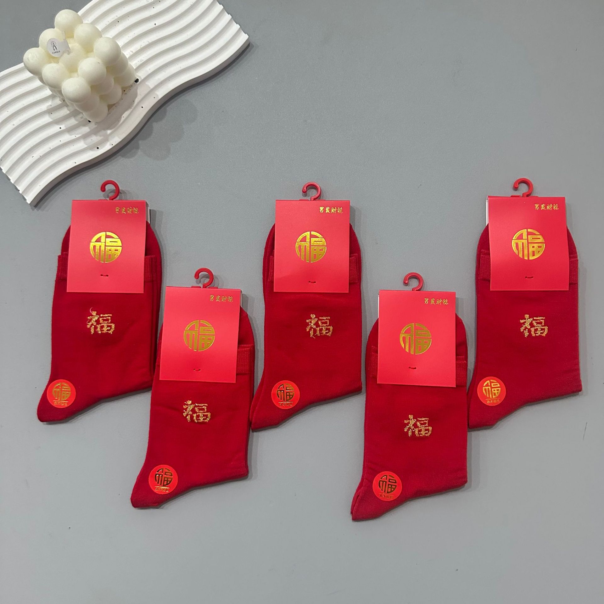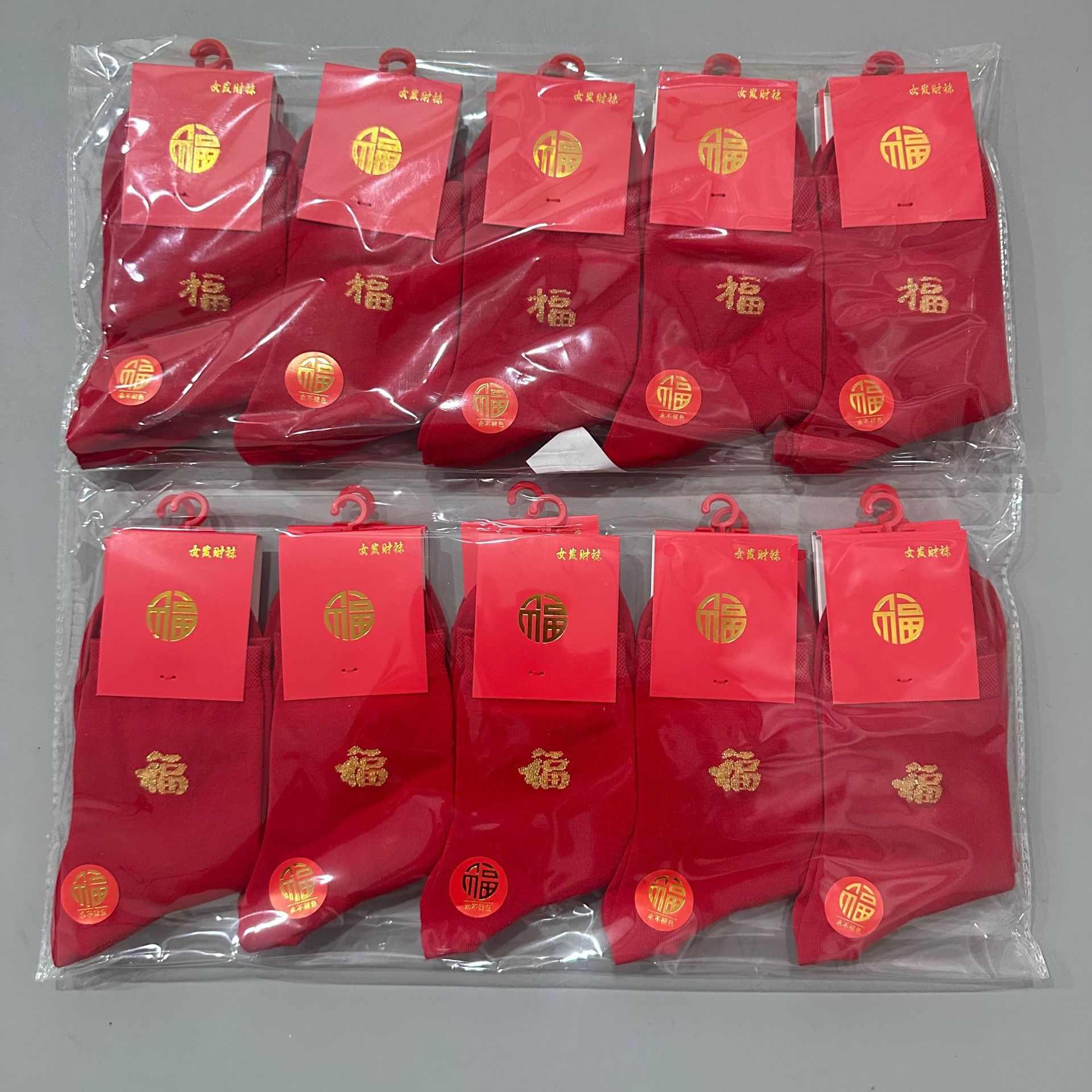 빨간 양말 황금 양모 양 가을과 겨울 빨간 양말 더블 바늘 남성과 여성의 빨간 양말 웨딩 양말 도매스토어 가기
