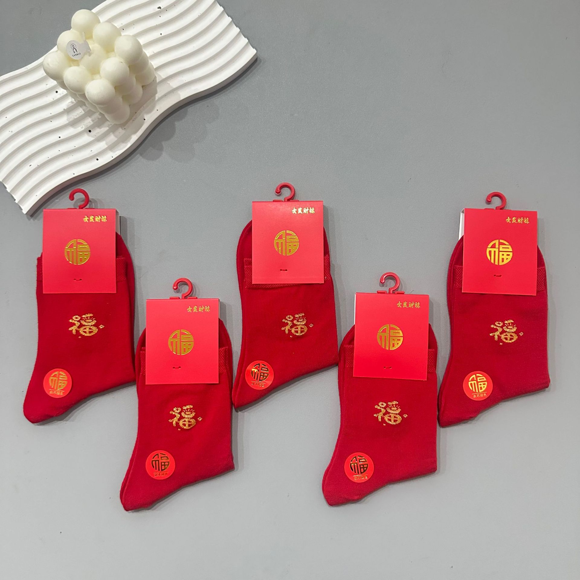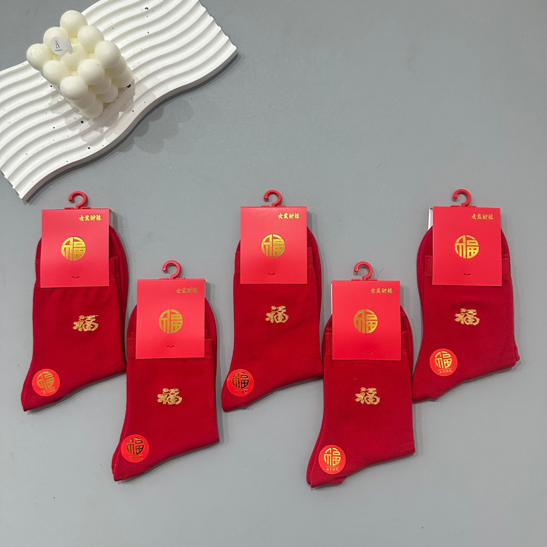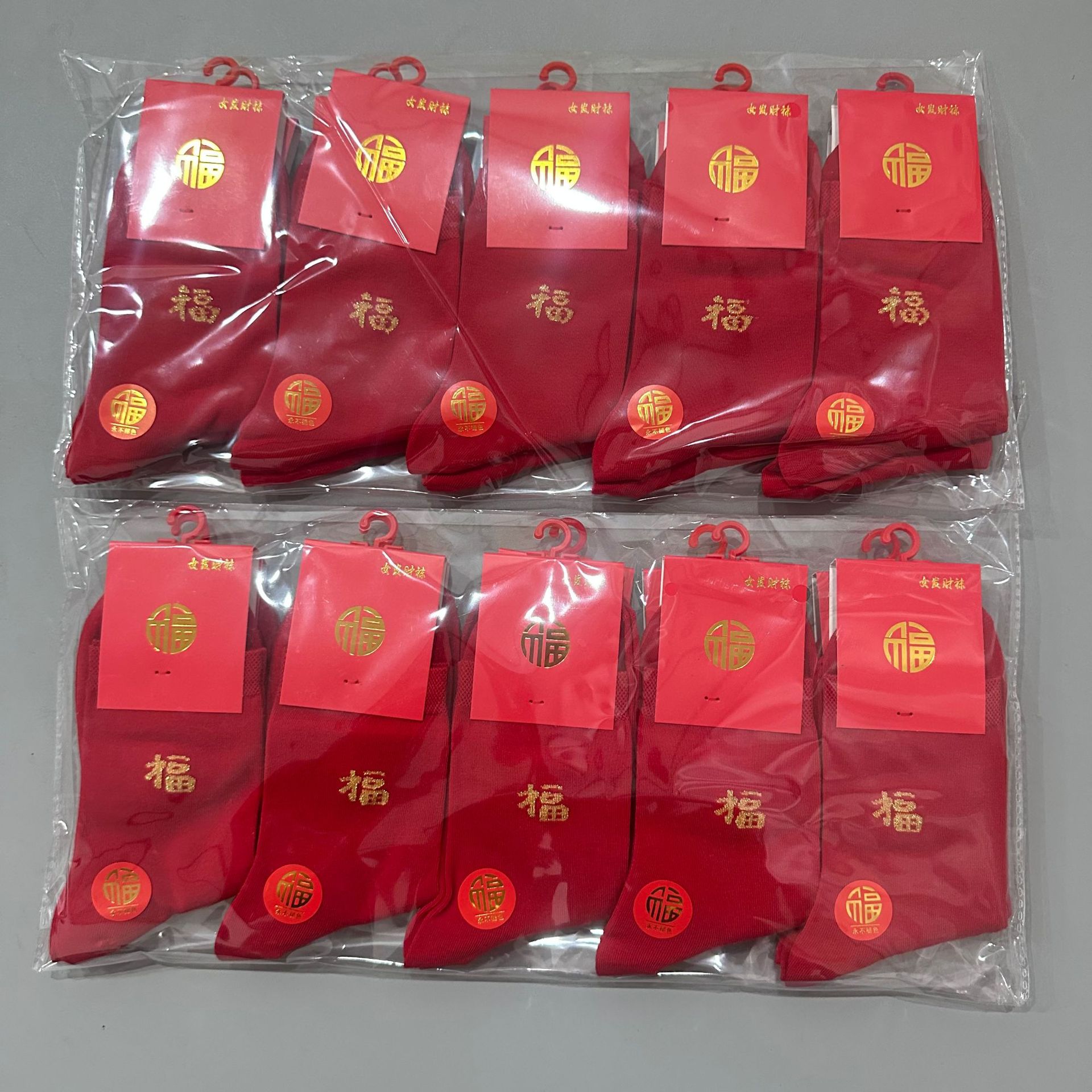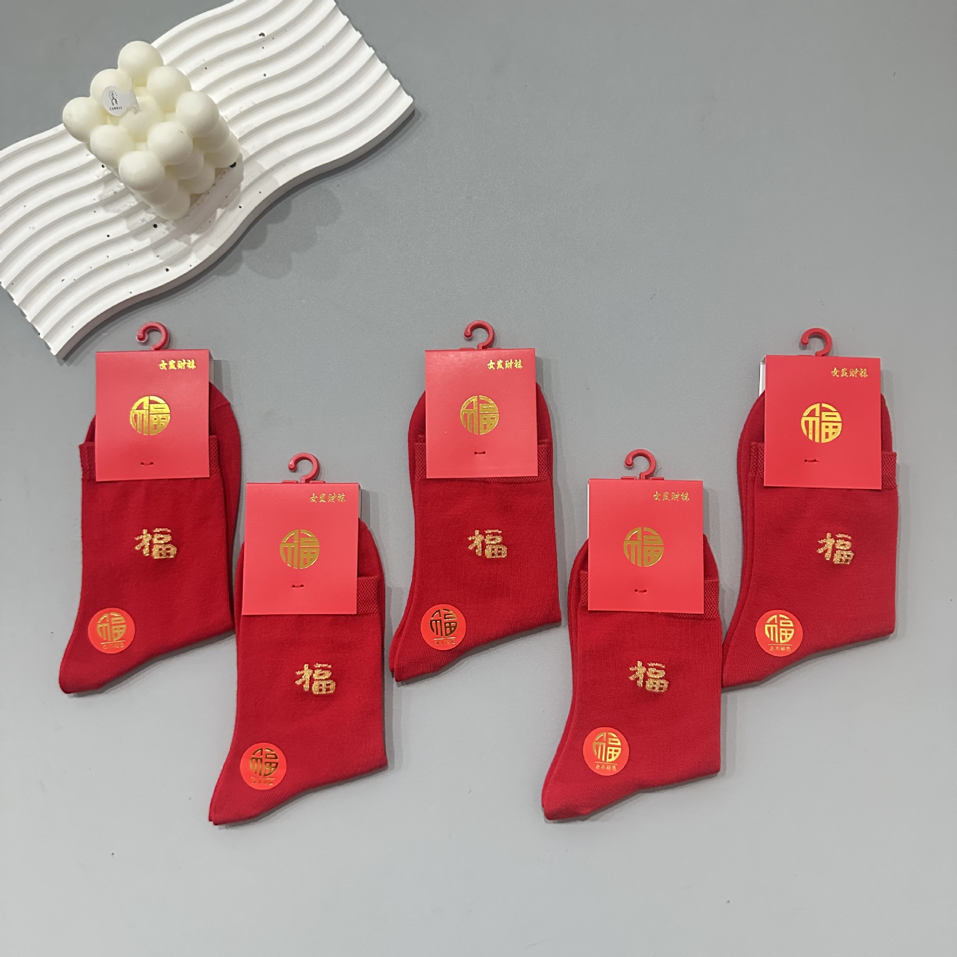 빨간 양말 황금 양모 양 가을과 겨울 빨간 양말 더블 바늘 남성과 여성의 빨간 양말 웨딩 양말 도매스토어 가기