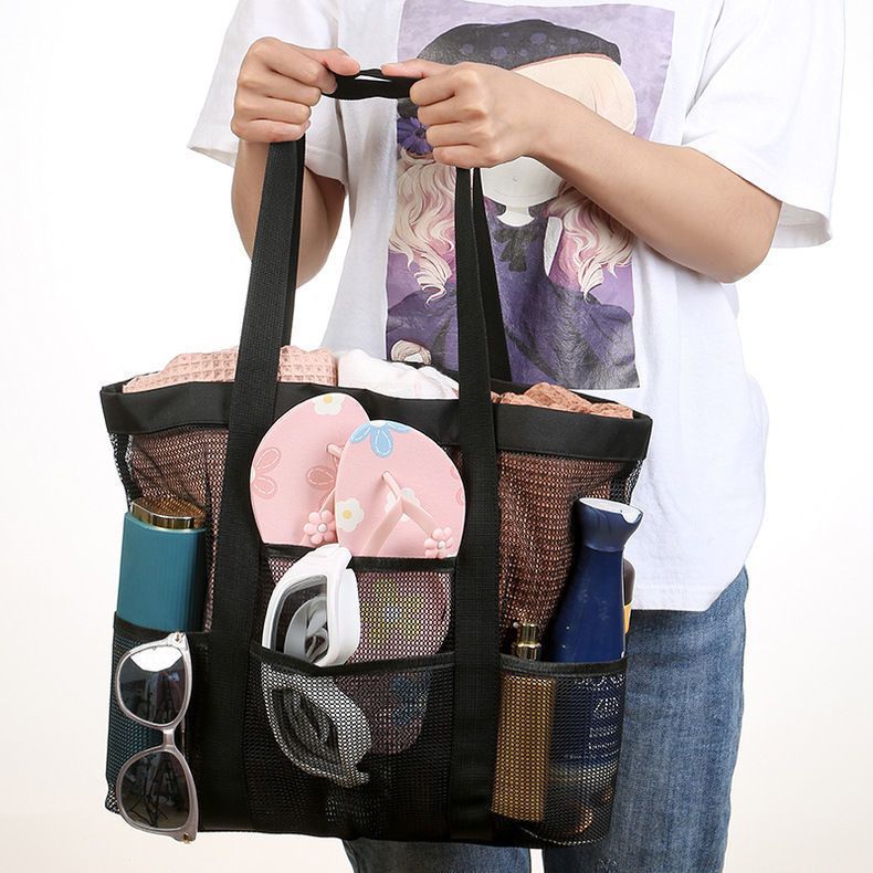 휴대용 메쉬 비치 백 수영 목욕 가방 8 포켓 메쉬 화장품 보관 가방 투명 세척 및 난초스토어 가기