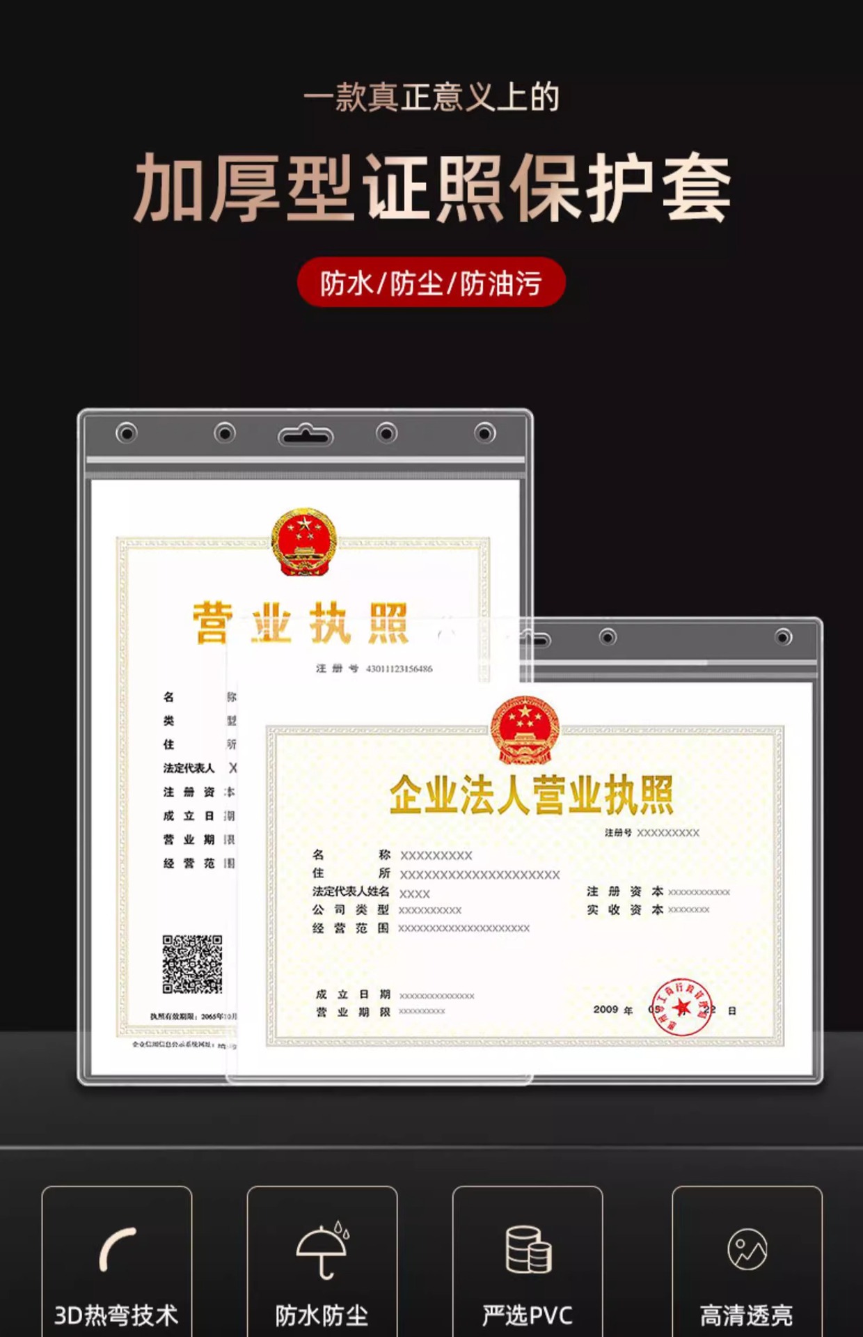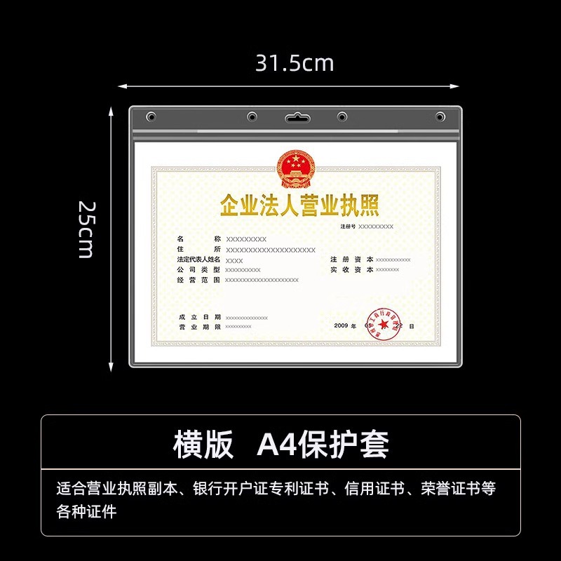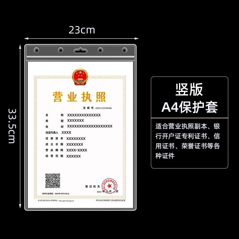 • [A4 세로 버전] - 비즈니스 라이센스 사본의 새 버전(29.7*21CM)에 적합