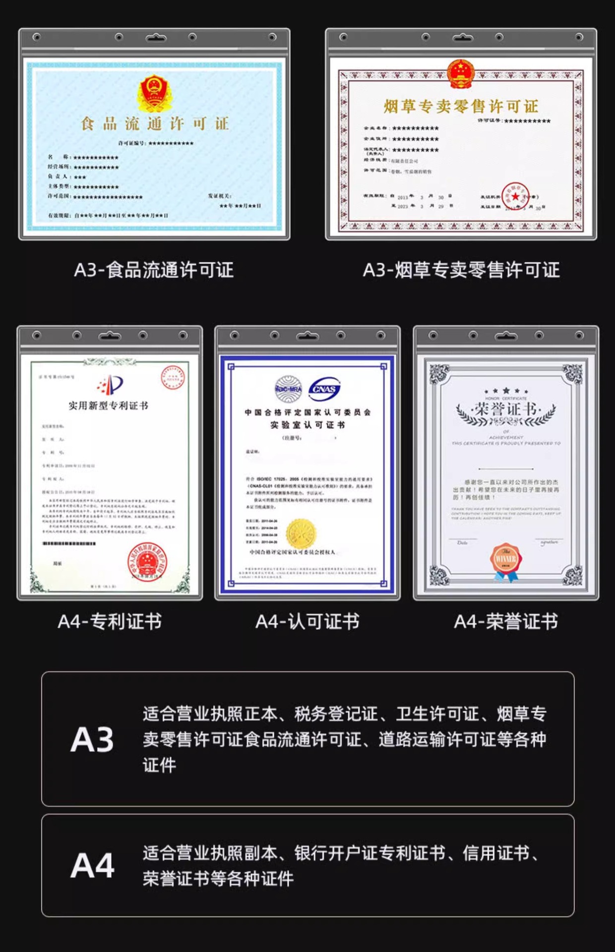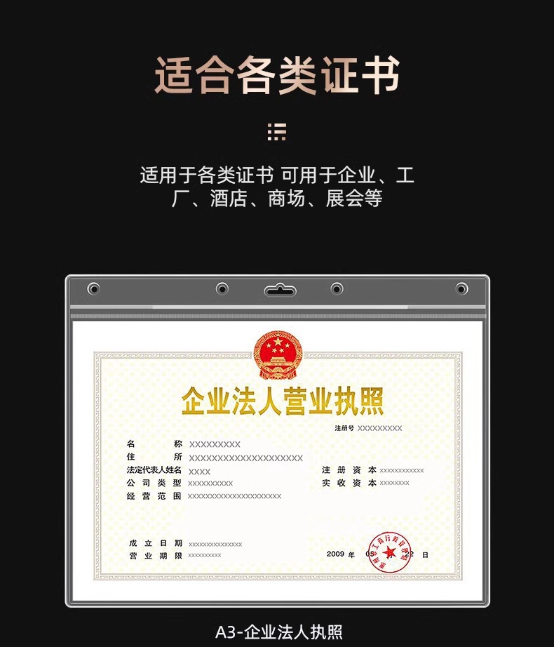 • [A3 세로 버전] - 산업 및 상업 사업 자격증 원본 버전의 새 버전에 적합(42*29.7CM)