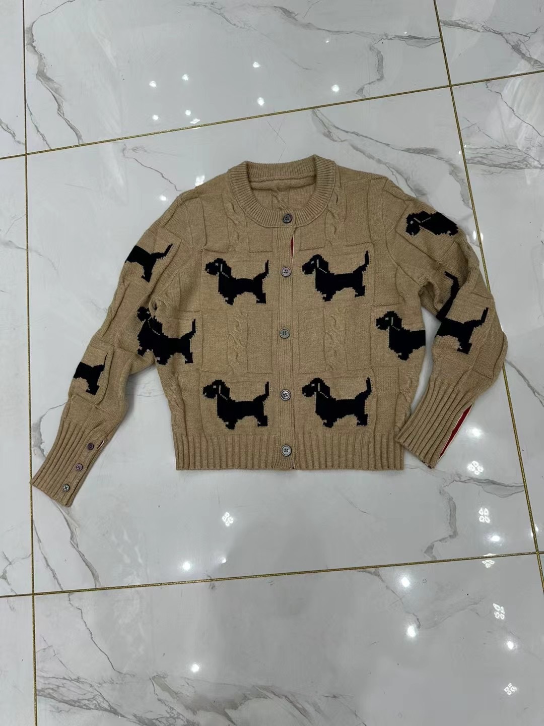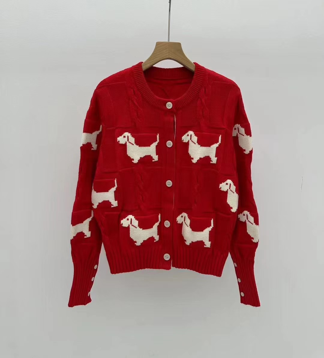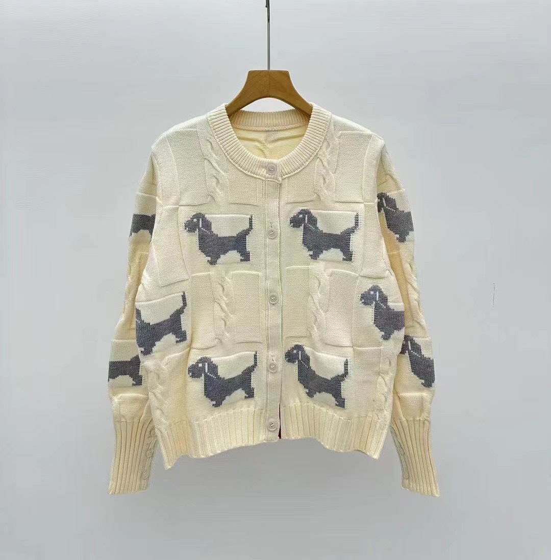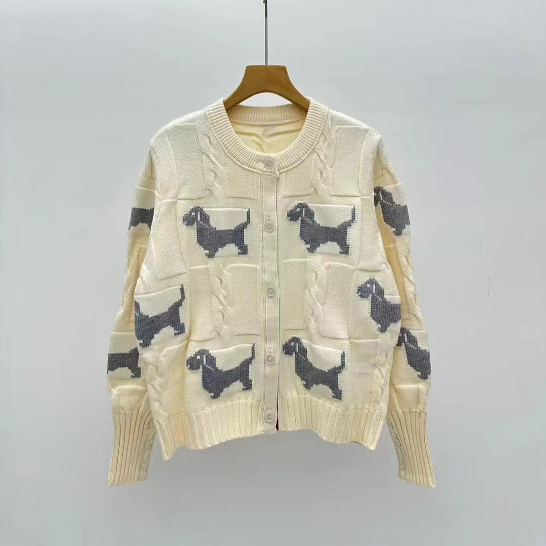 아카데미 스타일 강아지 자카드 올 매치 양모 니트 카디건 여자 2024 가을 및 겨울 뉴 에이지 감소 짧은 스웨터 코트스토어 가기
