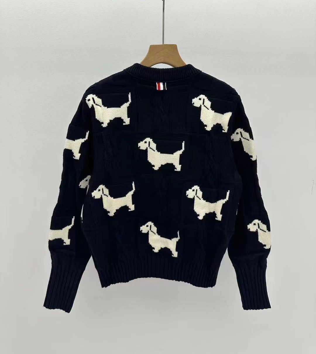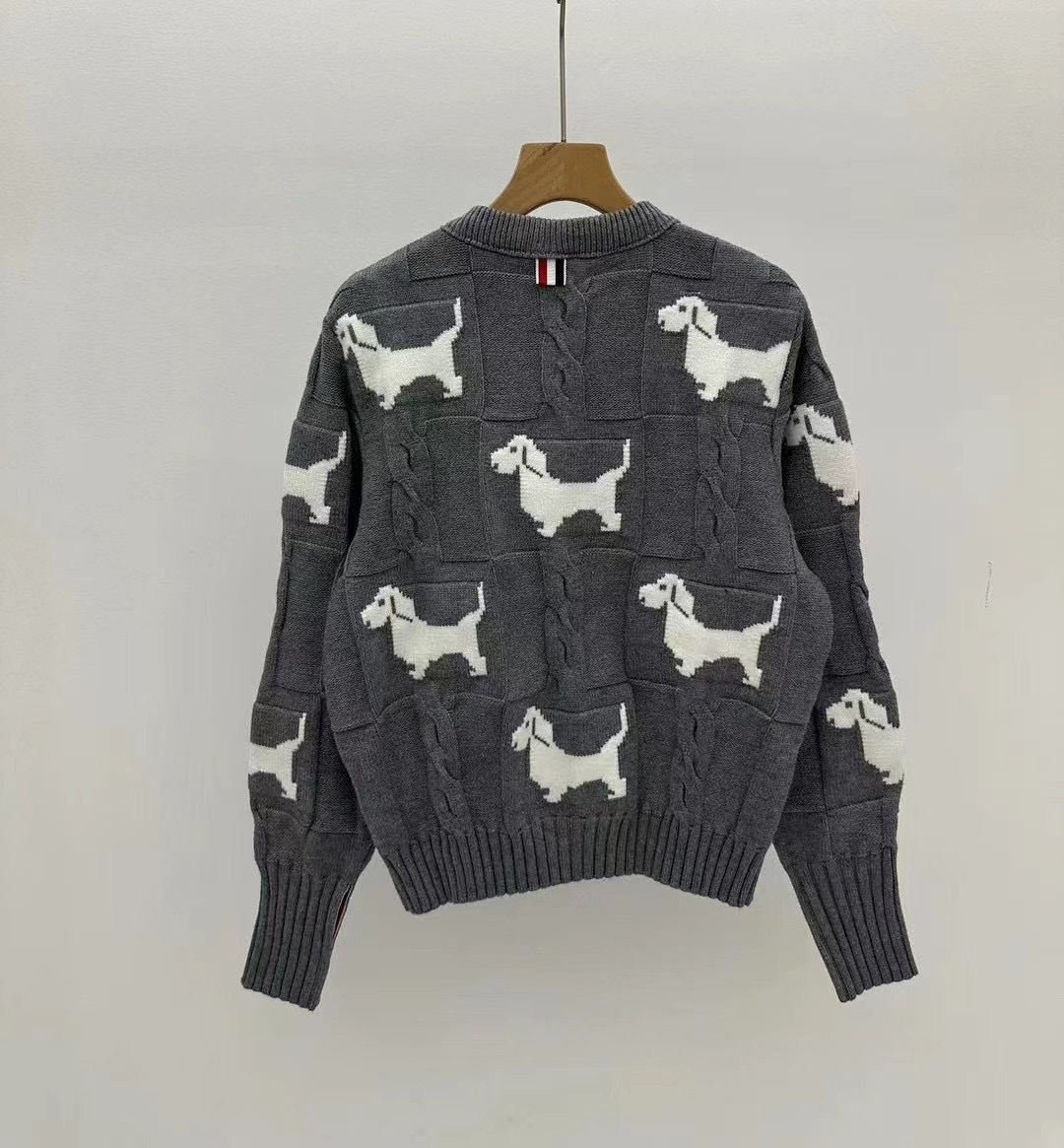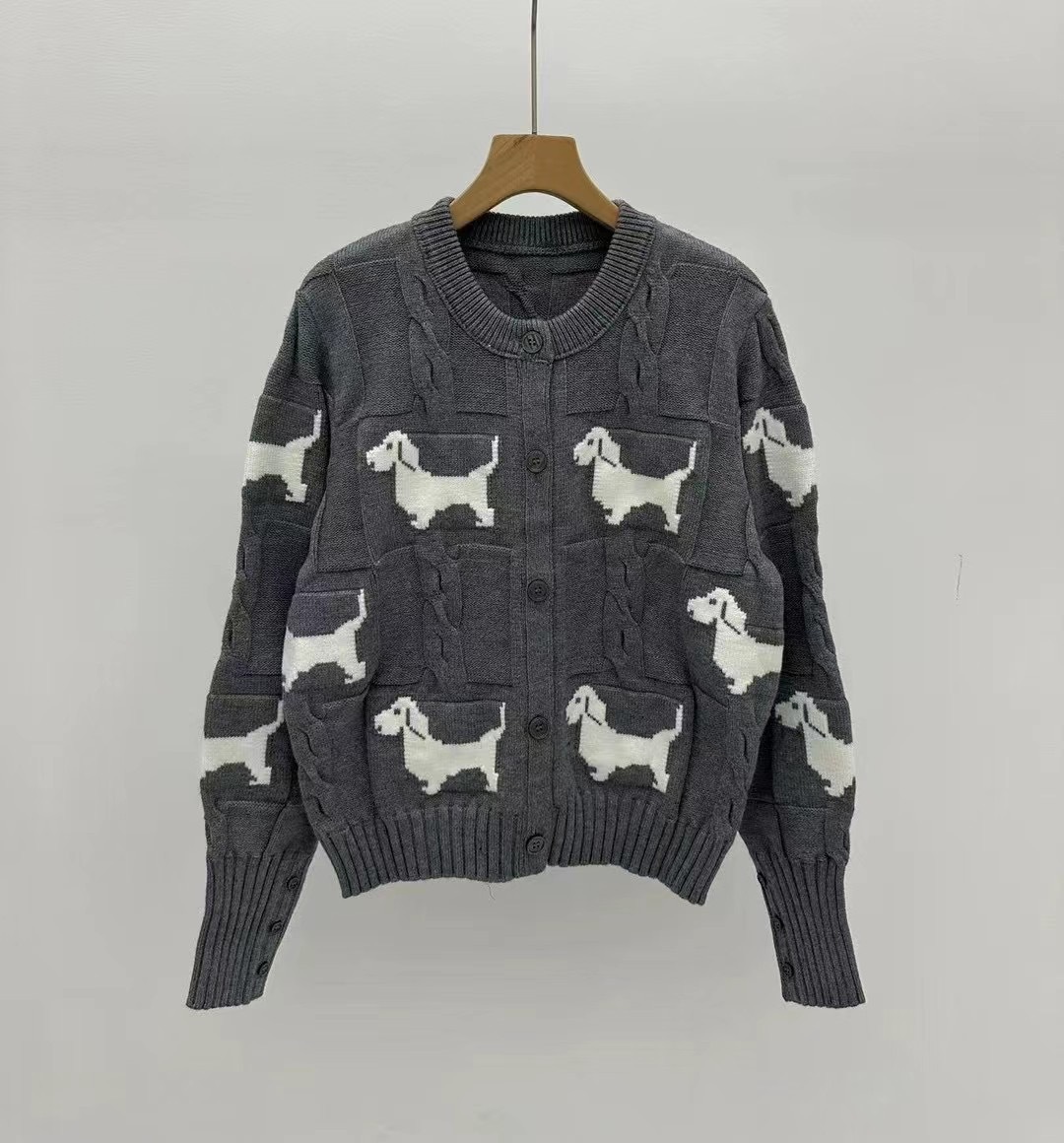 아카데미 스타일 강아지 자카드 올 매치 양모 니트 카디건 여자 2024 가을 및 겨울 뉴 에이지 감소 짧은 스웨터 코트