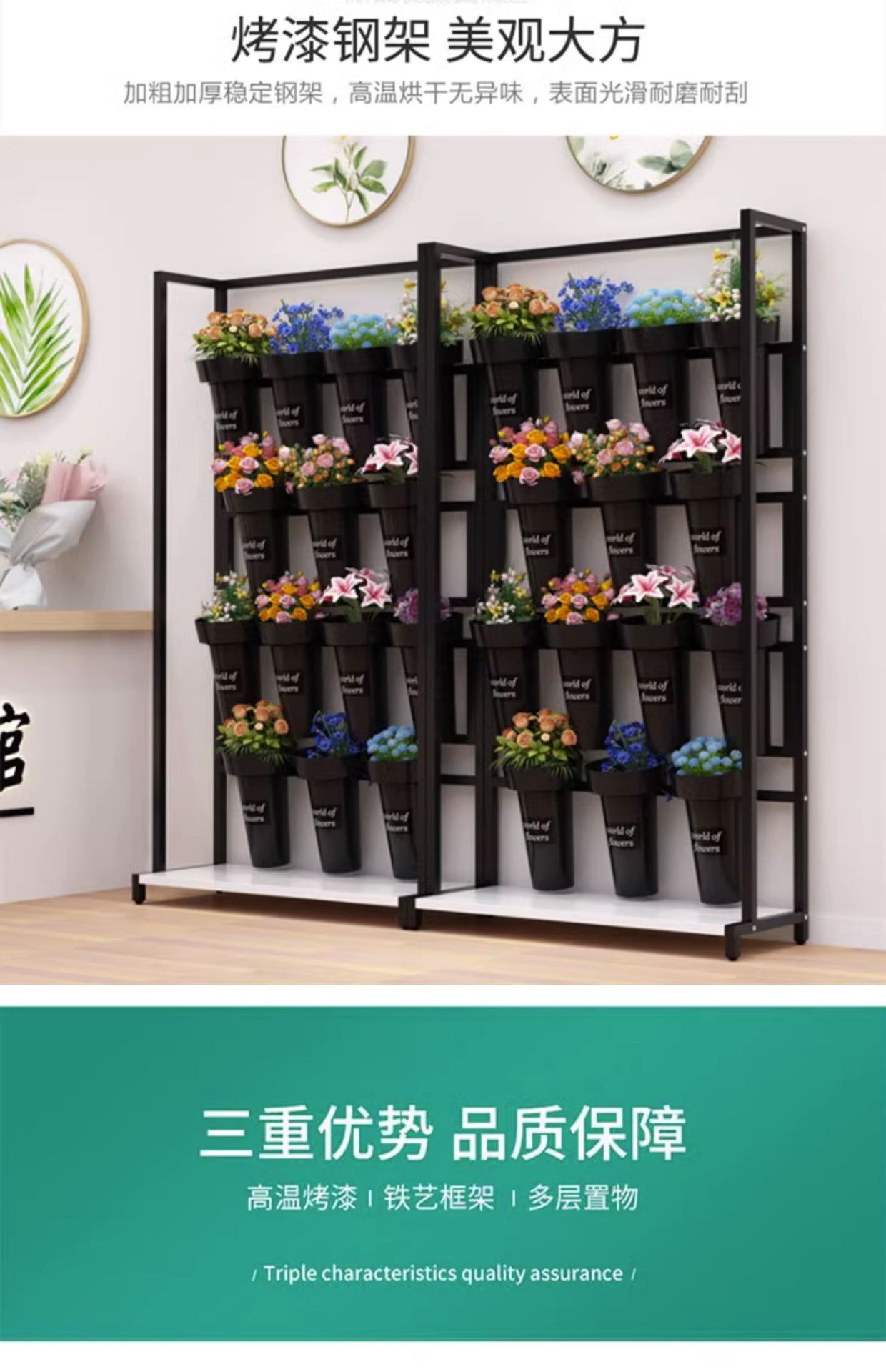 가게 꽃 랙 다층 꽃 꽃다발 디스플레이 랙 슈퍼 좁은 꽃 냄비 랙 꽃 저장 랙 바닥 꽃 버킷 디스플레이 랙
