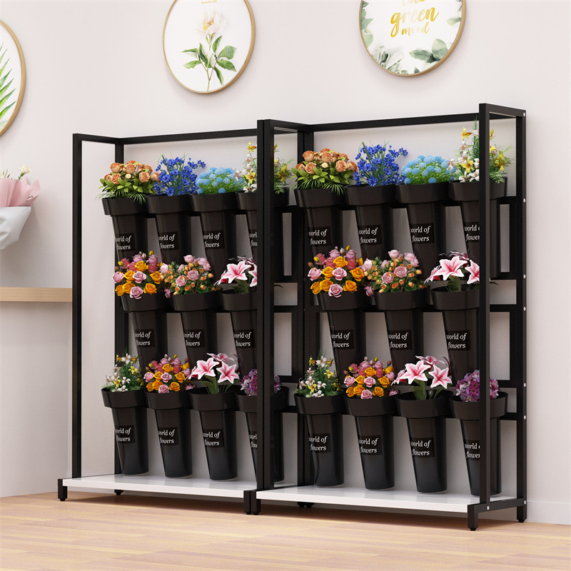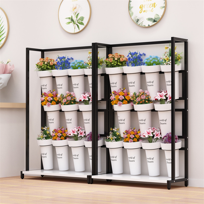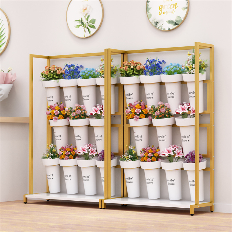 가게 꽃 랙 다층 꽃 꽃다발 디스플레이 랙 슈퍼 좁은 꽃 냄비 랙 꽃 저장 랙 바닥 꽃 버킷 디스플레이 랙스토어 가기