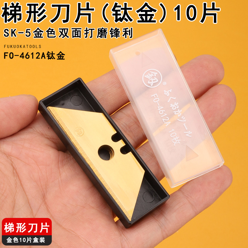 후쿠오카 도구 FO-4612A 티타늄 사다리꼴 블레이드 SK-5 아트 나이프 벽지 칼 교체 블레이드 10 조각스토어 가기