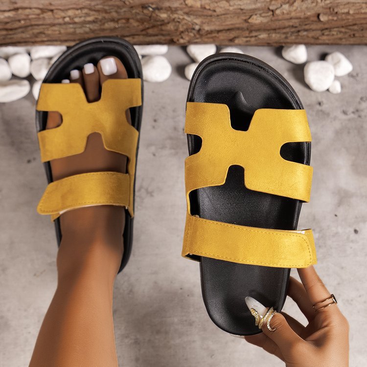24 여름 새로운 여성 신발 두 번째 삼촌 드래그 두꺼운 바닥 H 슬리퍼 벨크로 대외 무역 플러스 사이즈 패션 슬리퍼