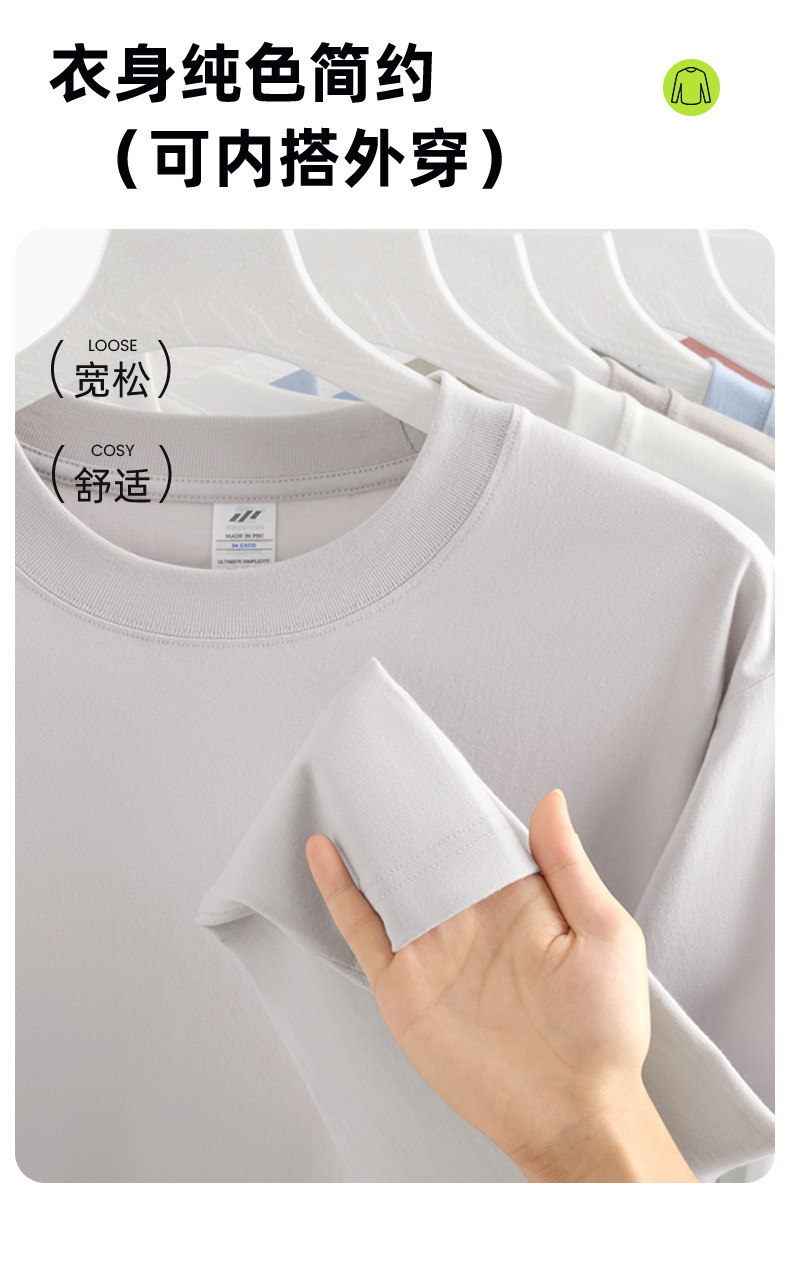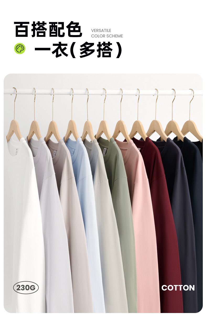 230 그램의 가을 신장 빗질면 무거운 둥근 목 단색 긴팔 남성 티셔츠 느슨한 바닥 셔츠 머리카락 한 세대스토어 가기