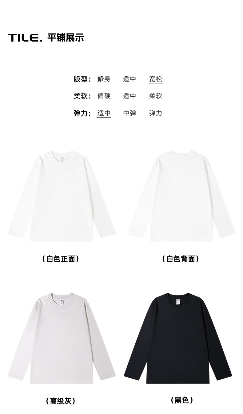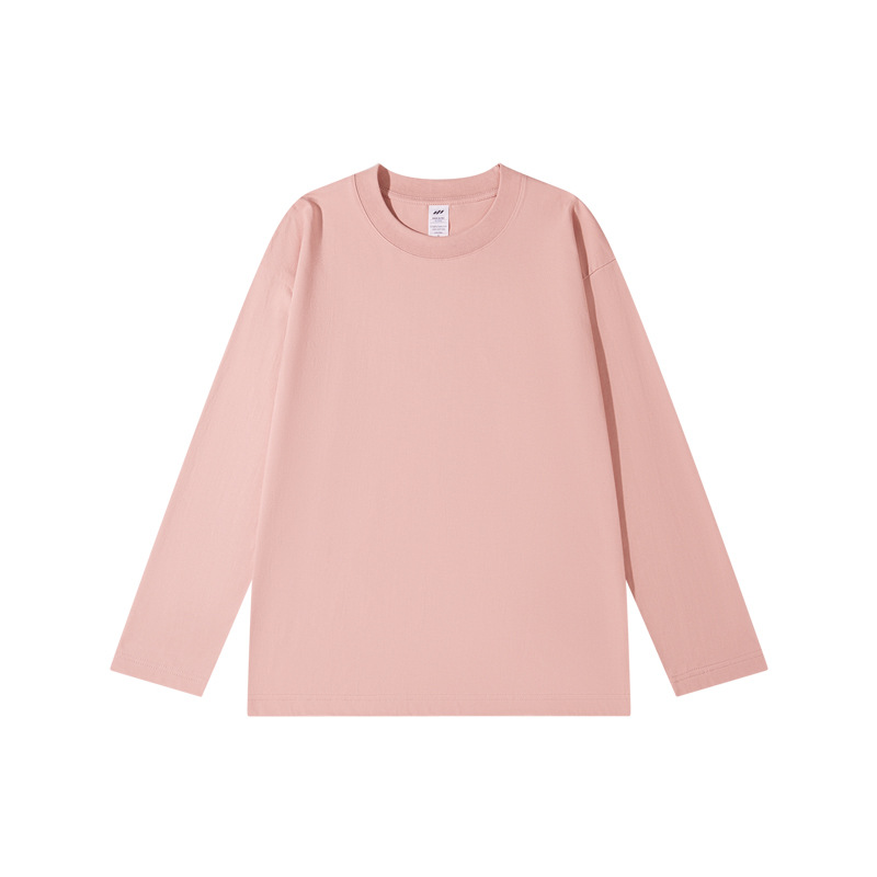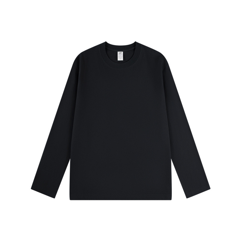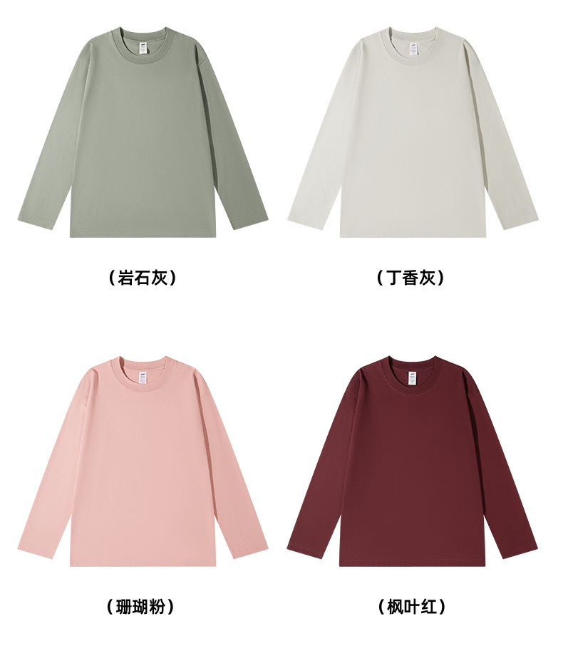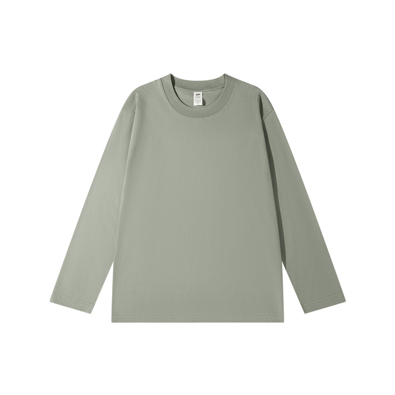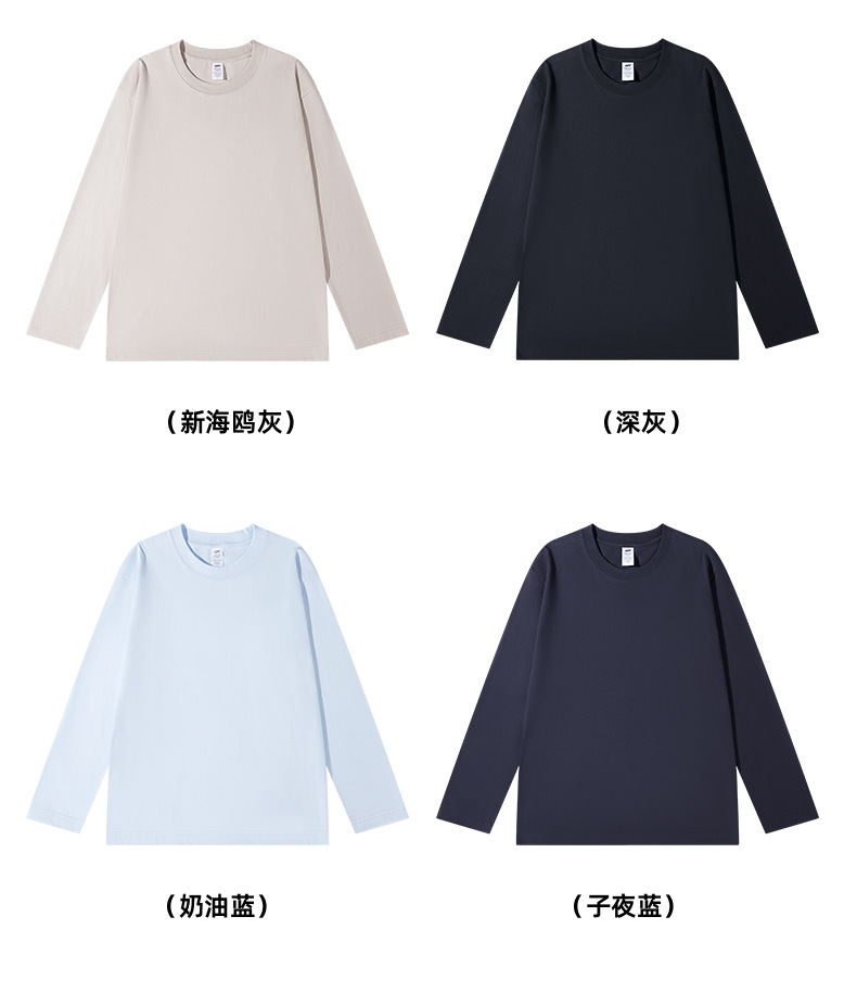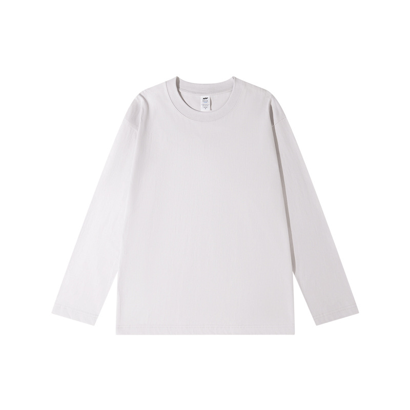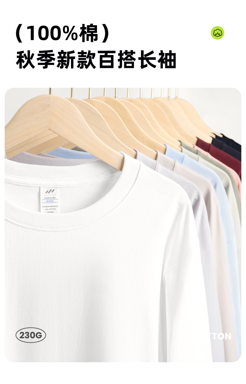 230 그램의 가을 신장 빗질면 무거운 둥근 목 단색 긴팔 남성 티셔츠 느슨한 바닥 셔츠 머리카락 한 세대