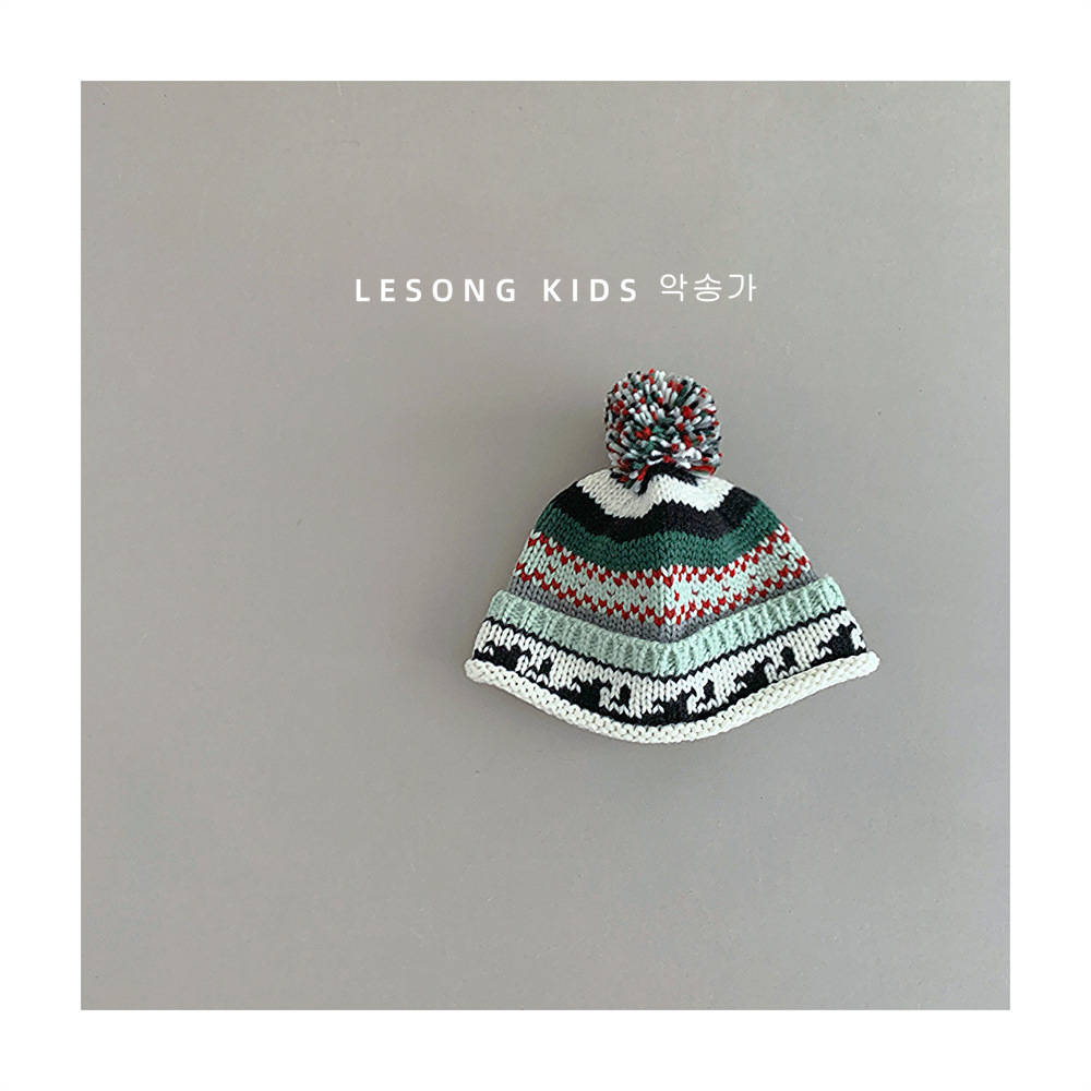 빈티지 자카드 콘트라스트 컬러 어린이 울 모자 가을과 겨울 새로운 한국 스타일 따뜻한 귀 보호 모자 아기 니트 모자스토어 가기