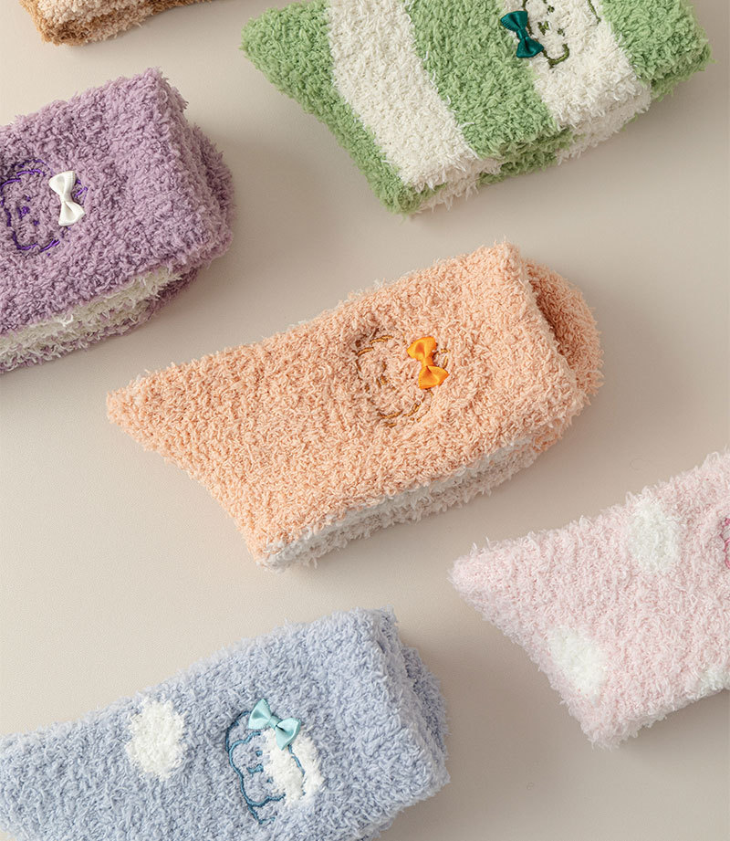 강아지 귀여운 산호 벨벳 양말 여성용 하프 벨벳 양말 겨울 두꺼운 따뜻한 바닥 양말 만화 수면 양말스토어 가기