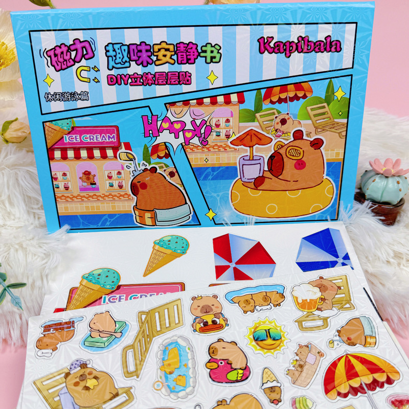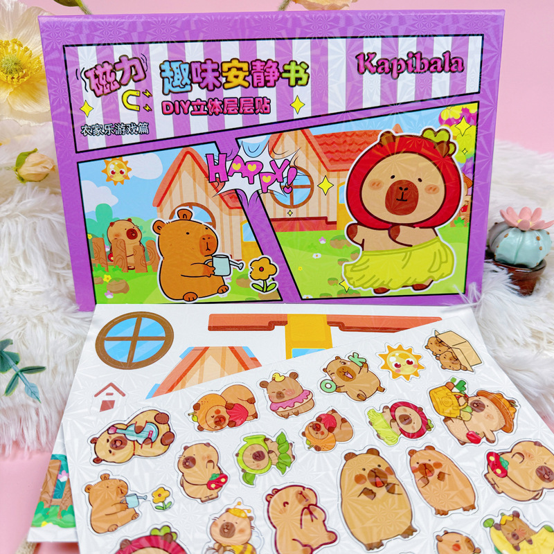 Kapibala Capybara 어린이 DIY 수제 입체 조용한 책 레이어 자기 흡입 무대 소녀 생일 선물