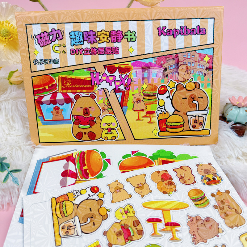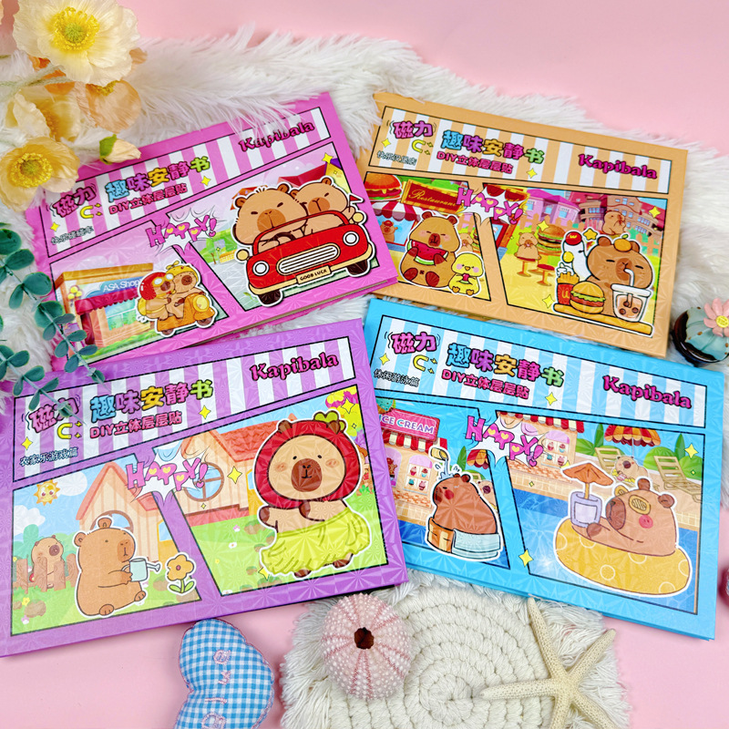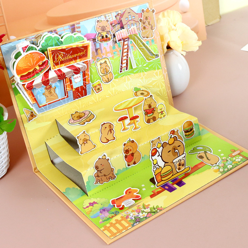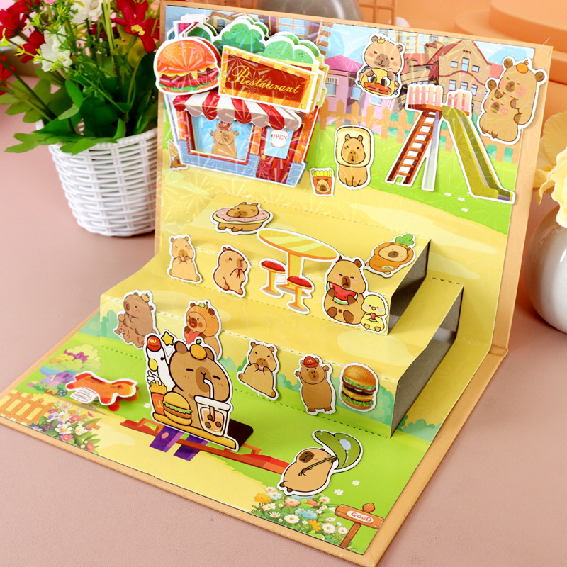 Kapibala Capybara 어린이 DIY 수제 입체 조용한 책 레이어 자기 흡입 무대 소녀 생일 선물스토어 가기