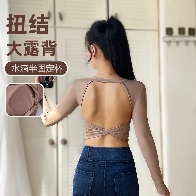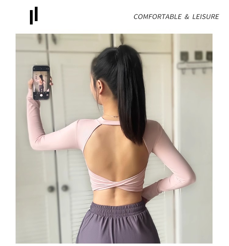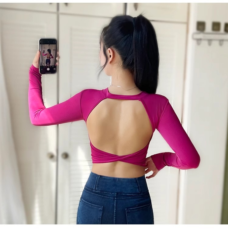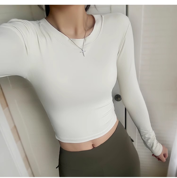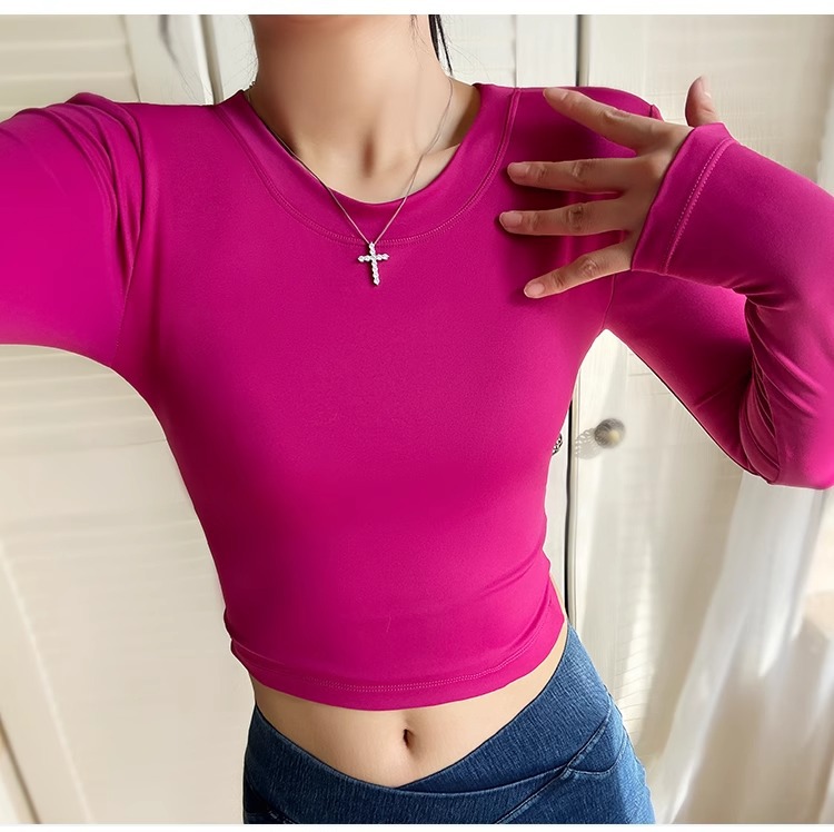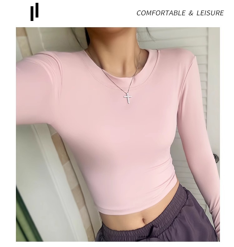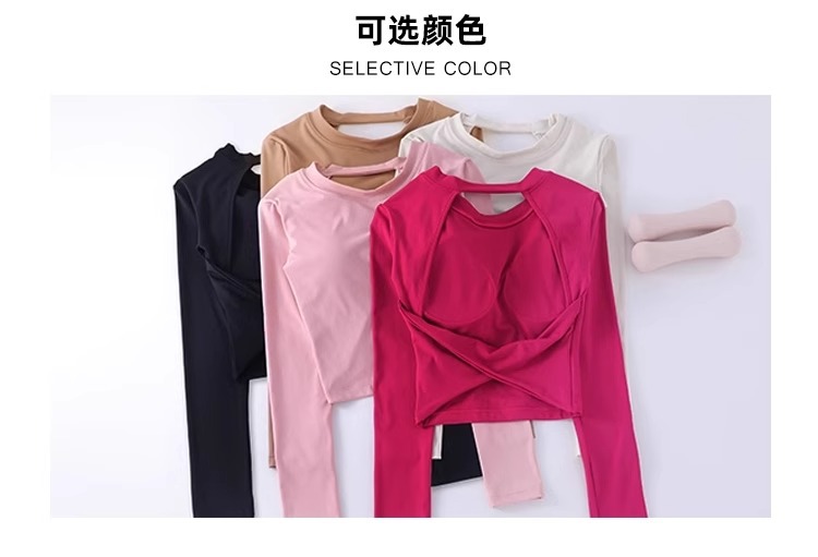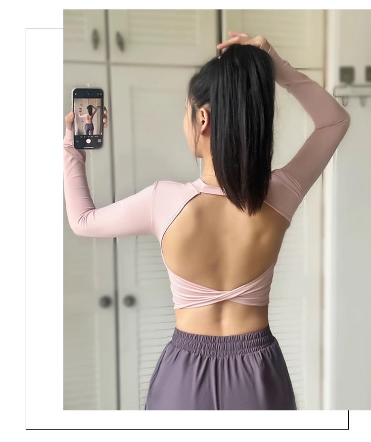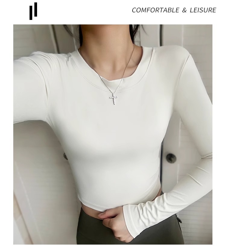 가슴 패드와 함께 스포츠 탑 슬림 긴 소매 우아한 패션 러닝 트레이닝 피트니스 의류 요가 옷 여성의 가을스토어 가기