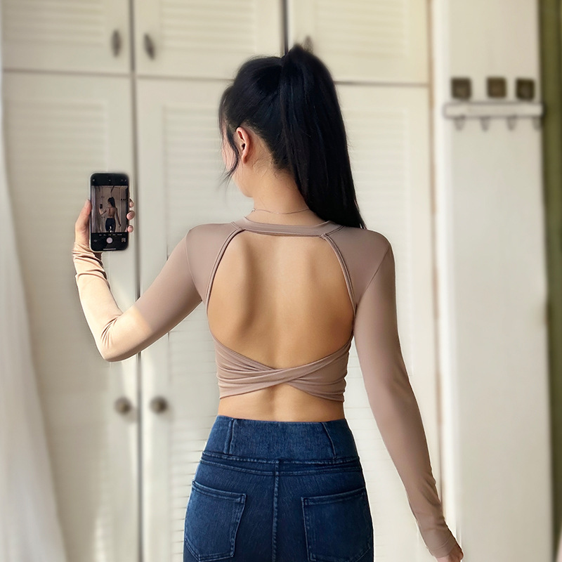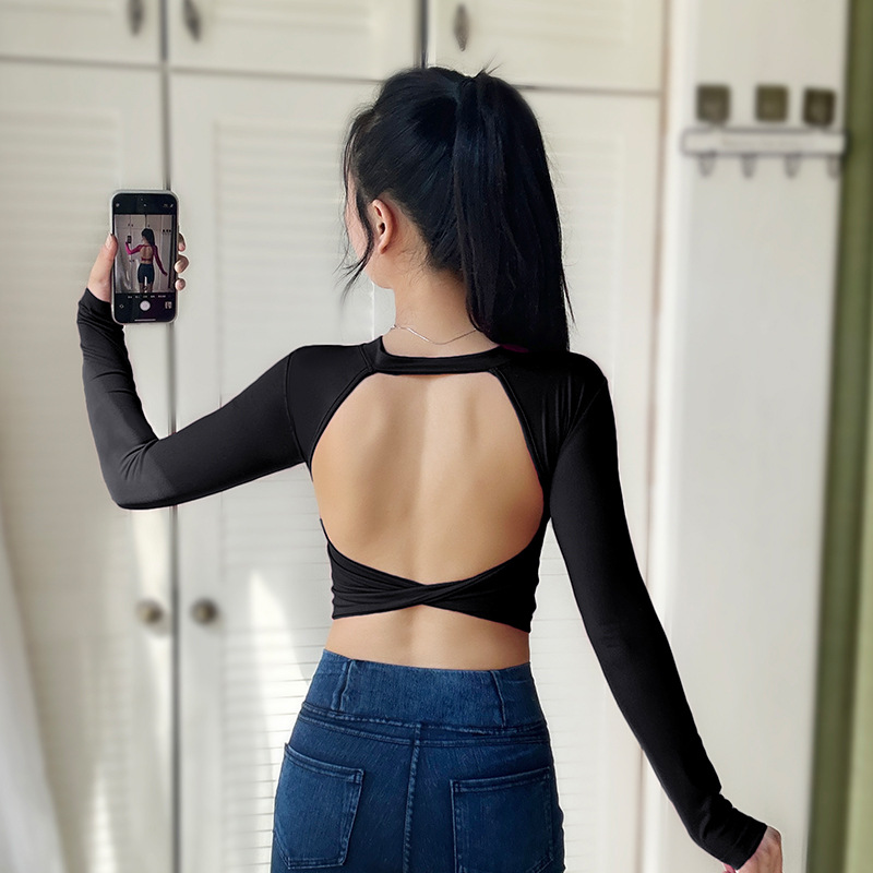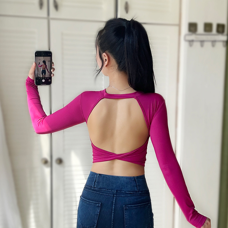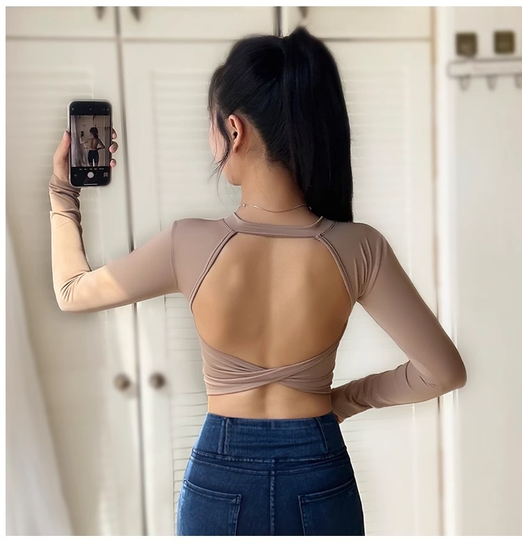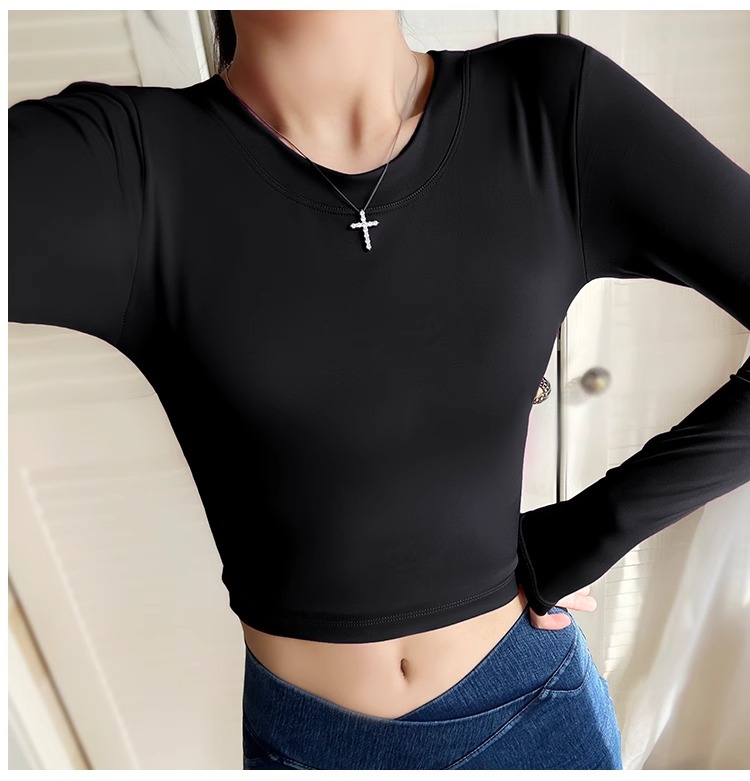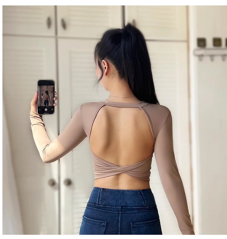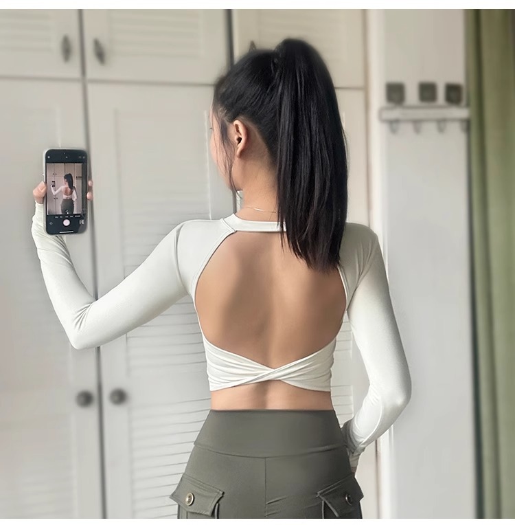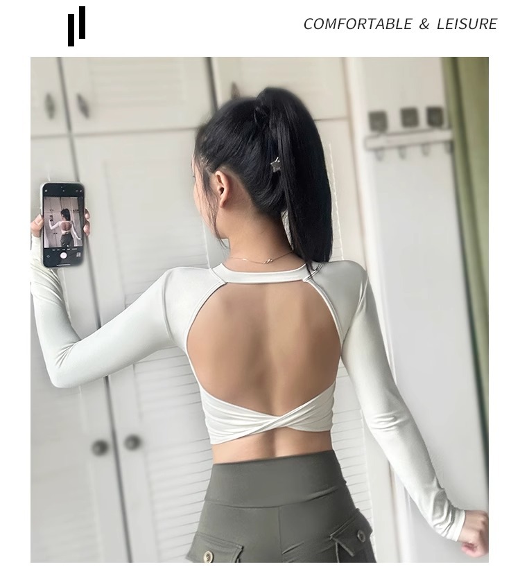 가슴 패드와 함께 스포츠 탑 슬림 긴 소매 우아한 패션 러닝 트레이닝 피트니스 의류 요가 옷 여성의 가을스토어 가기