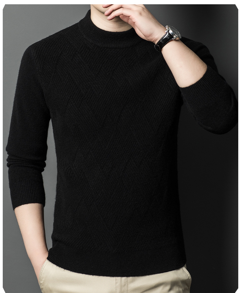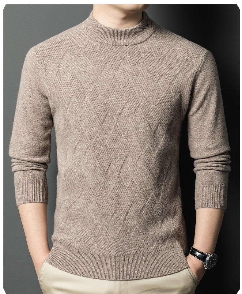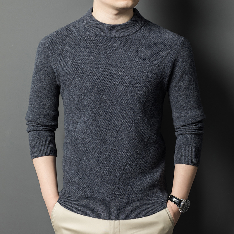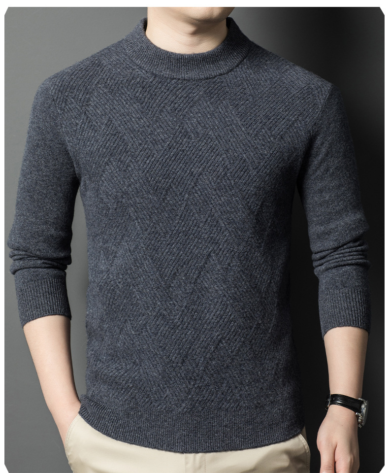 남자 가을과 겨울 하이 엔드 하프 터틀넥 울 다이아몬드 격자 자카드 니트 스웨터 젊은 중년 두꺼운 올 매치 스웨터스토어 가기