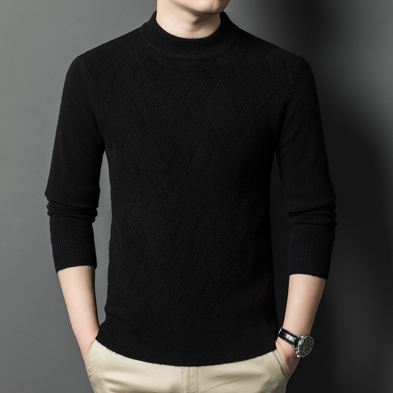 남자 가을과 겨울 하이 엔드 하프 터틀넥 울 다이아몬드 격자 자카드 니트 스웨터 젊은 중년 두꺼운 올 매치 스웨터