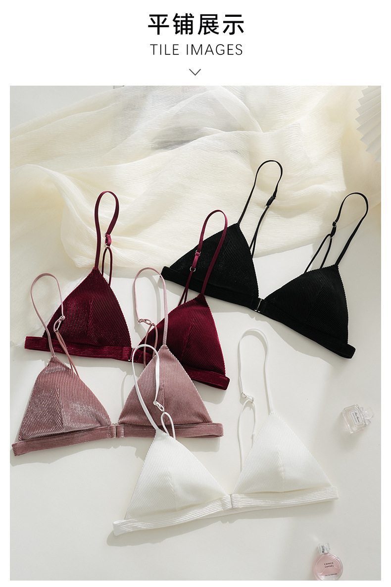 프랑스 스타일 트라이앵글 컵 속옷 여성 전면 버클 얇은 스트랩 스틸 링 없음 섹시한 브래지어 아름다운 백 울트라 얇은 브래지어 세트스토어 가기