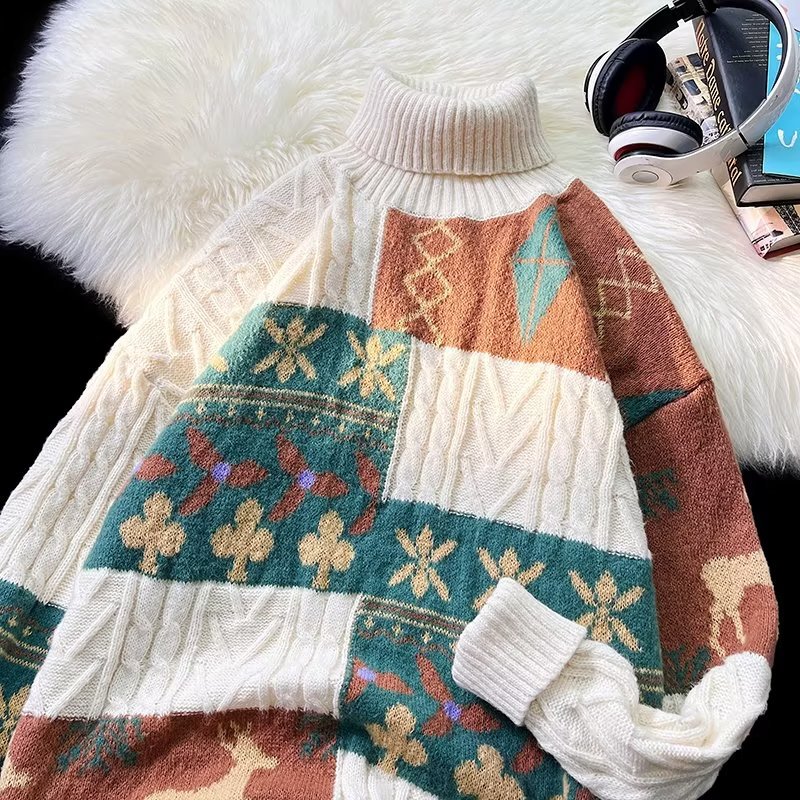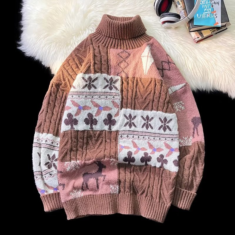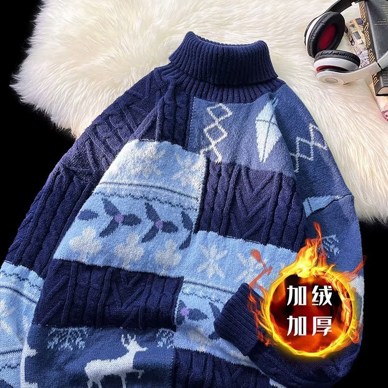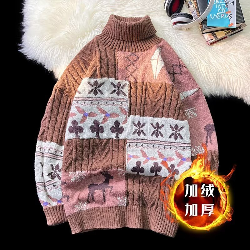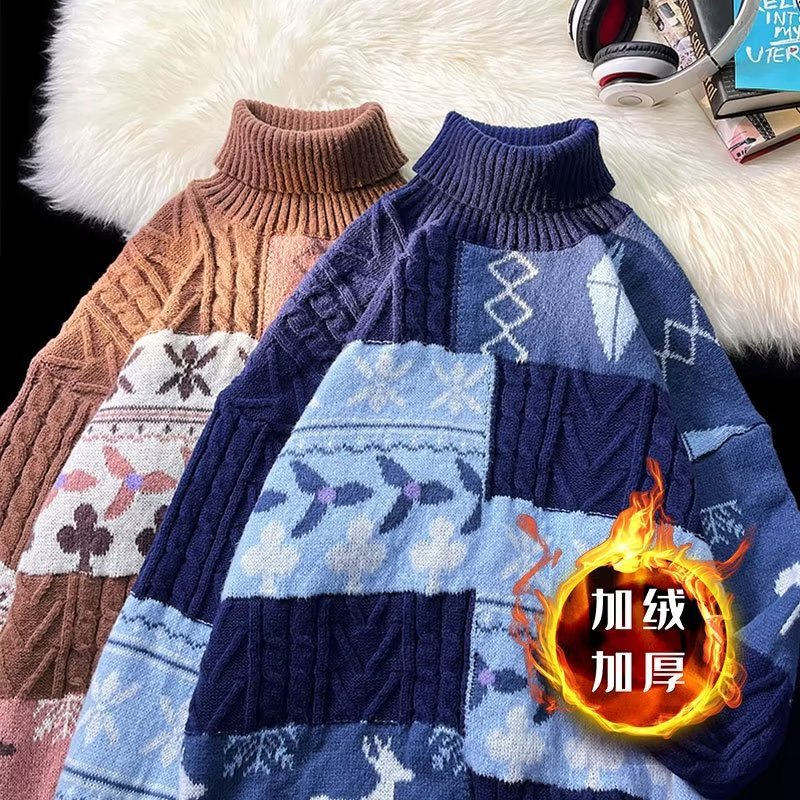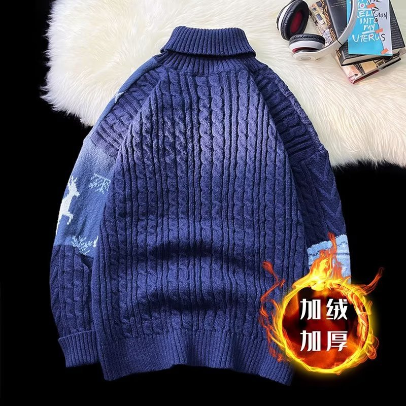 대외 무역 남자 가을 겨울 유행 따뜻한 높은 목 모피 일본 스타일 레트로 캐주얼 게으른 스타일 남성과 여성의 터틀넥 스웨터스토어 가기