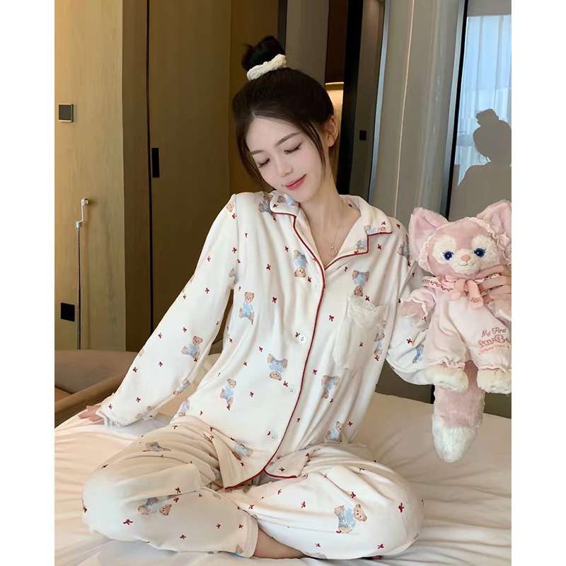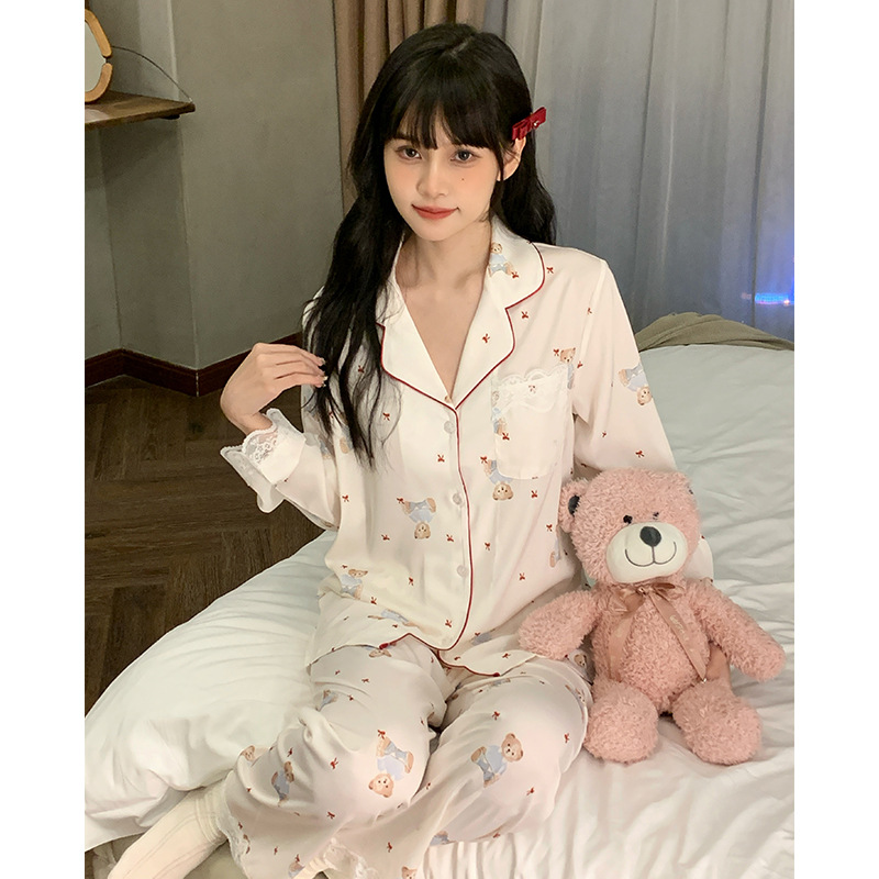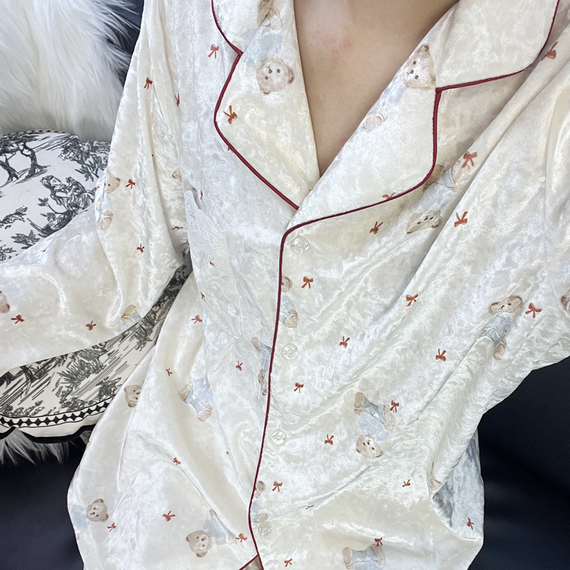 작은 빨간 책 좋은 밤 곰 한국 소녀 잠옷 가을과 겨울 긴 소매 바지 골드 다이아몬드 벨벳 홈 의류 세트스토어 가기