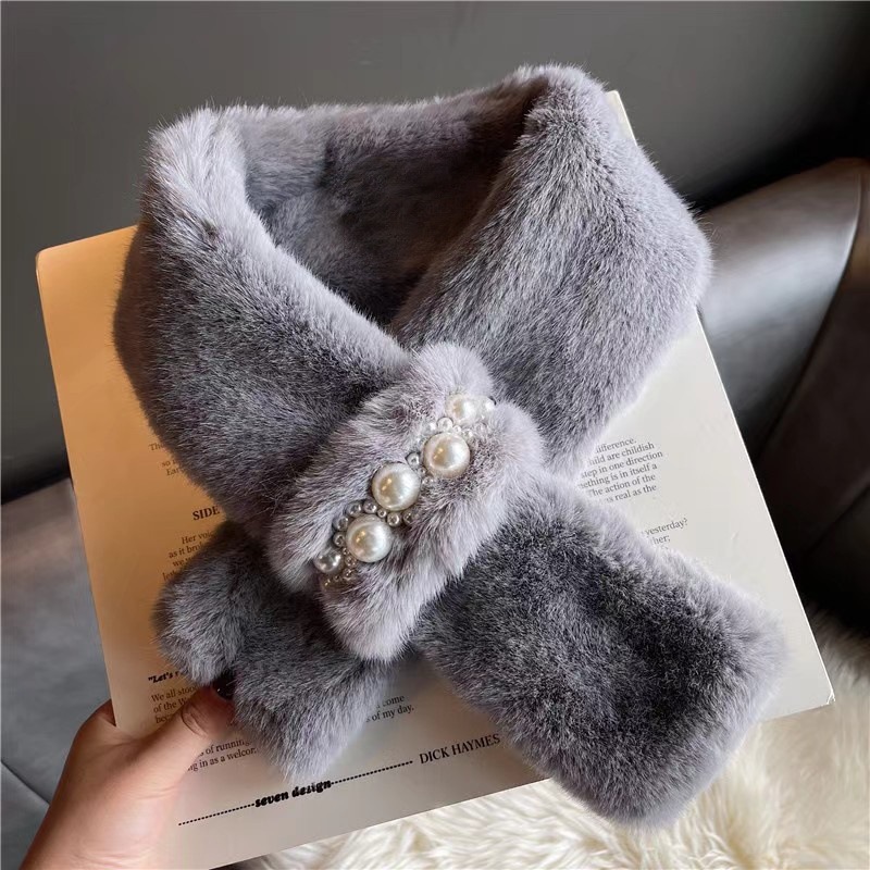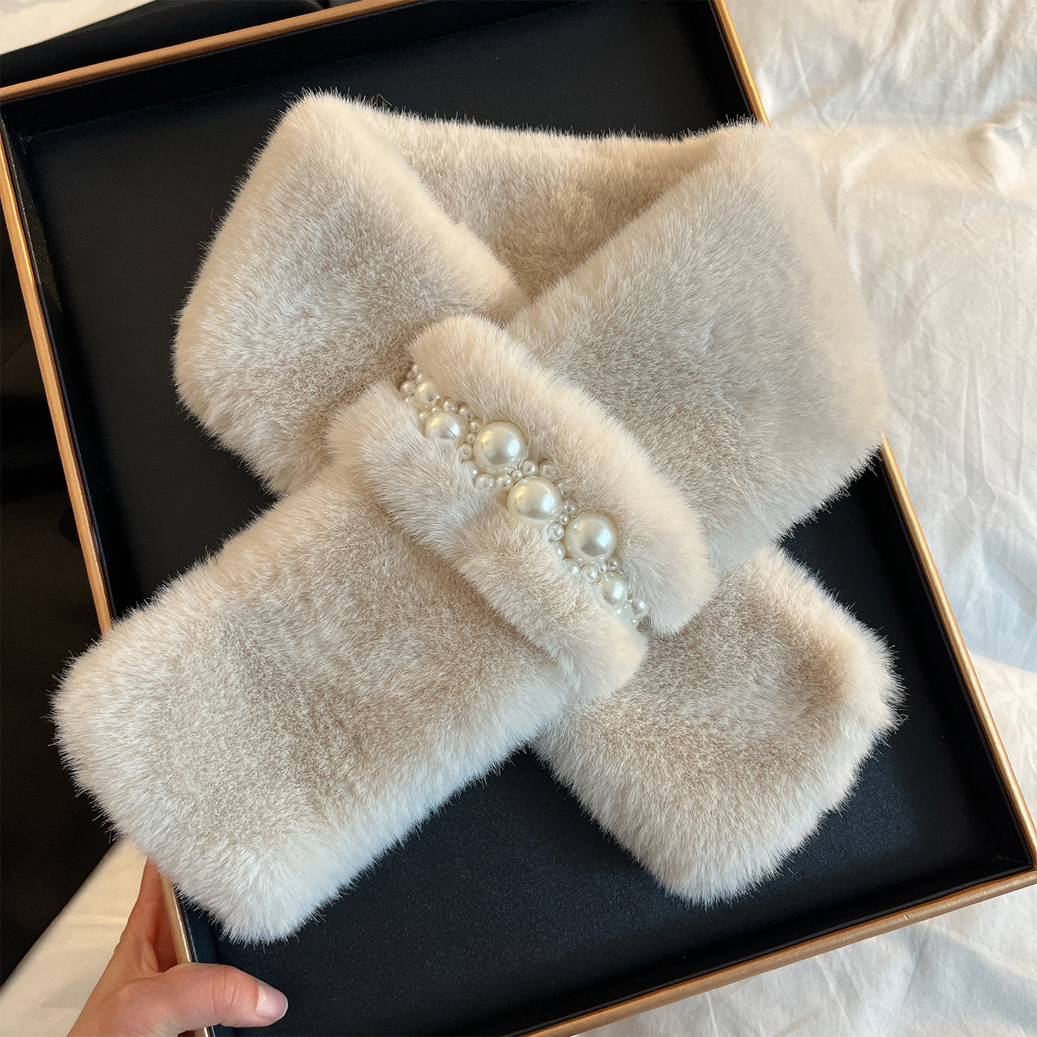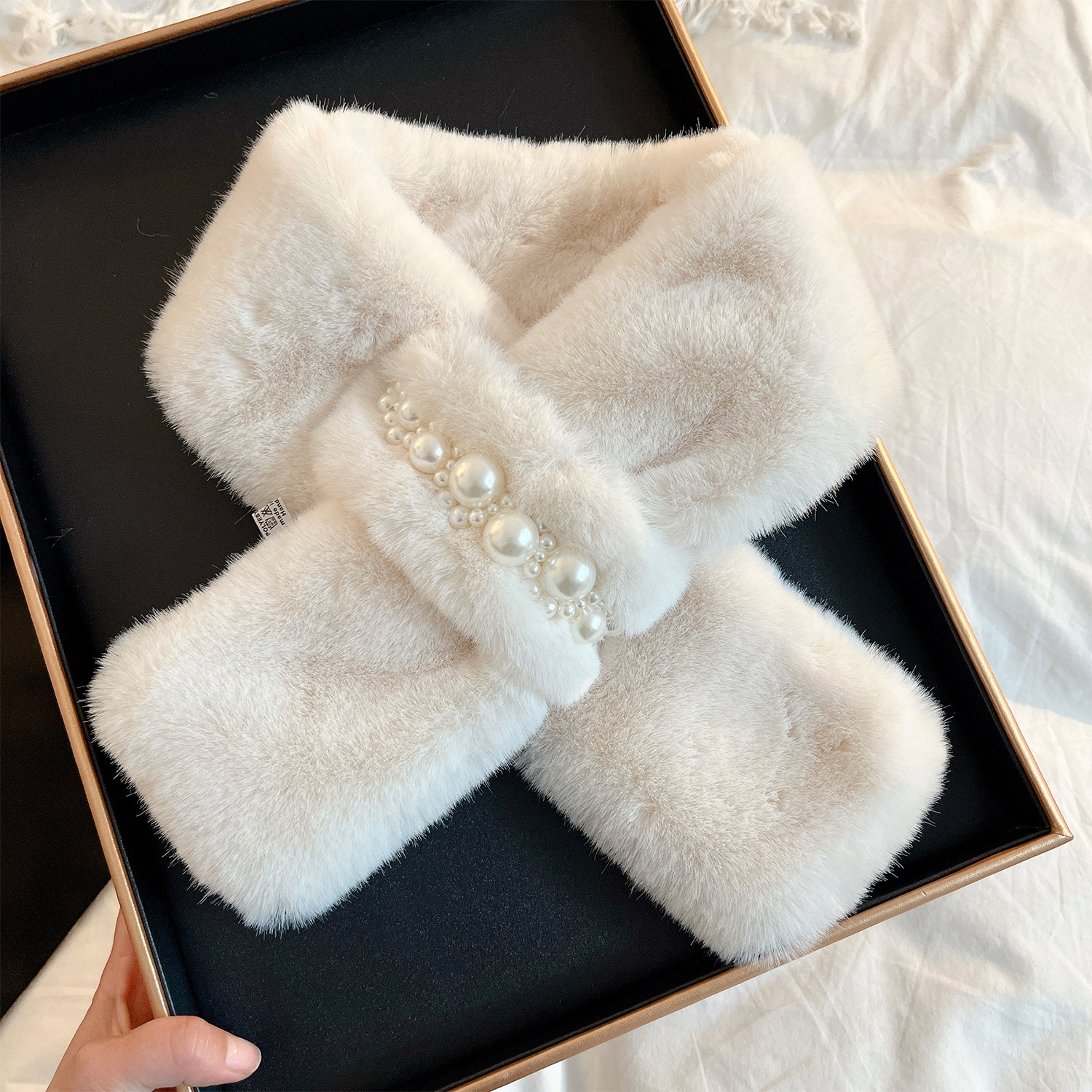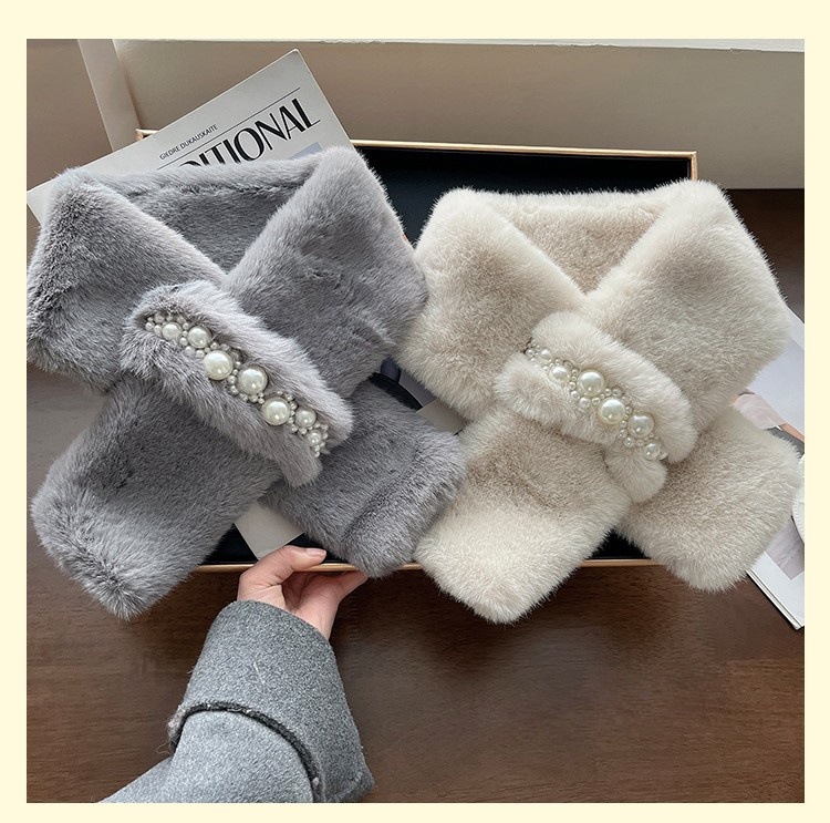 가을과 겨울 올 매치 일본식 인기 스타일 울리 따뜻한 목 보호 봉제 스카프 한국식 여성용 진주 버클 두꺼운 스카프스토어 가기