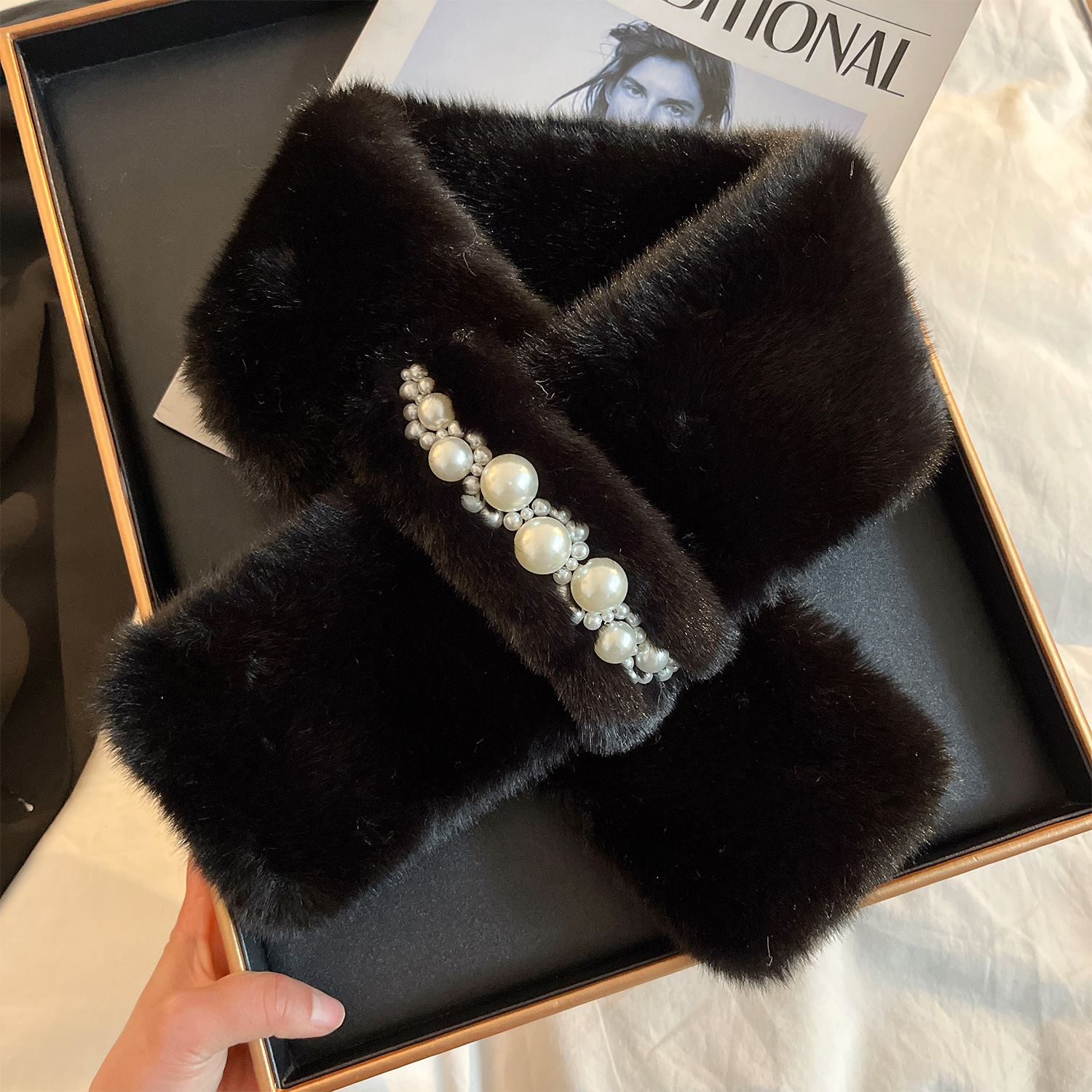 가을과 겨울 올 매치 일본식 인기 스타일 울리 따뜻한 목 보호 봉제 스카프 한국식 여성용 진주 버클 두꺼운 스카프