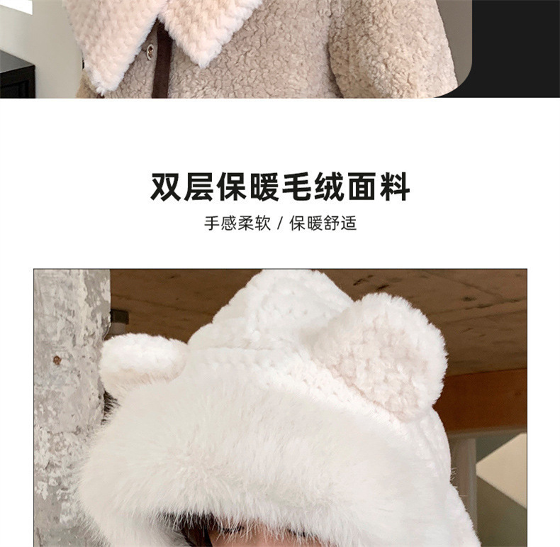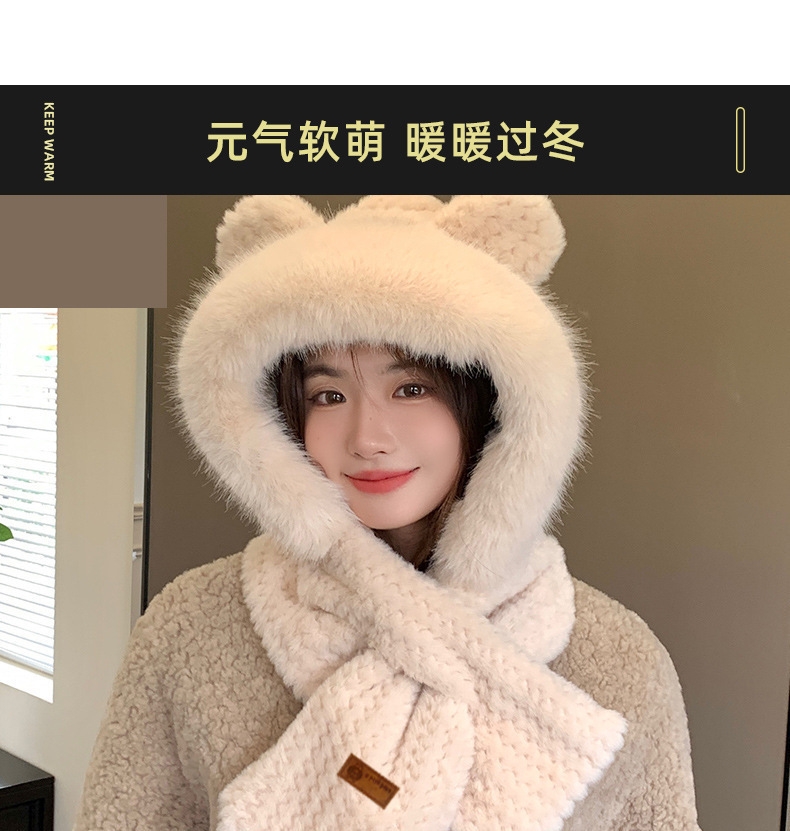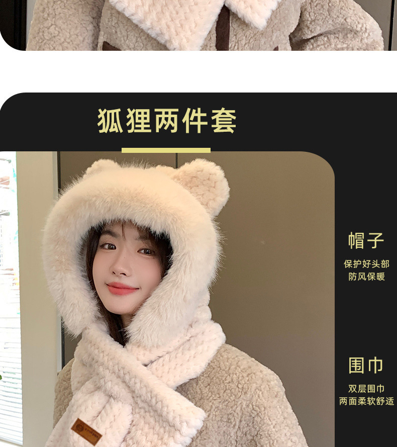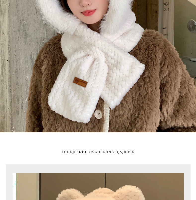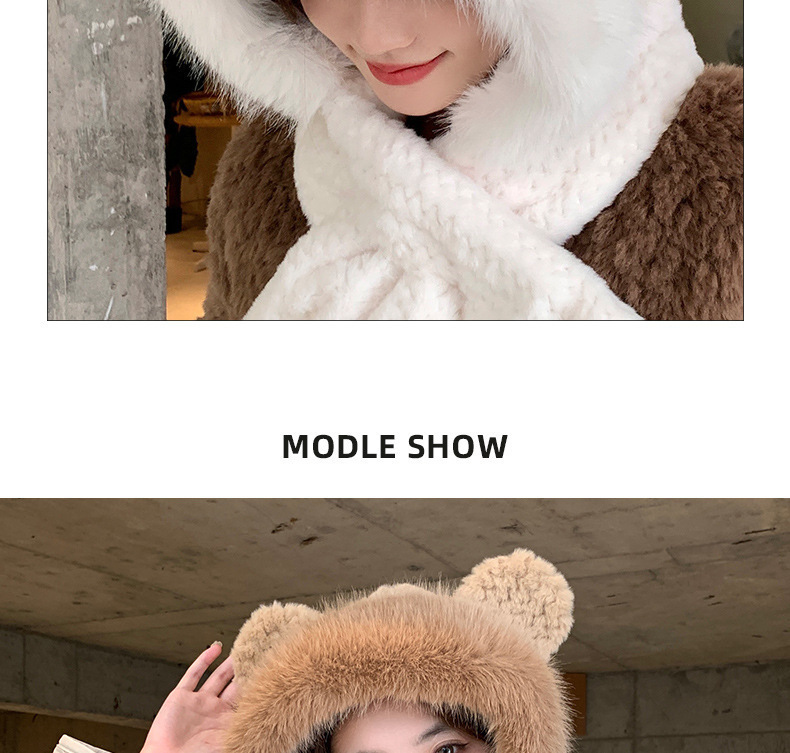 귀여운 곰 모자와 스카프 통합 여성의 겨울 푹신한 모자 여성의 겨울 기모 따뜻한 귀 보호 냉장 모자 물결