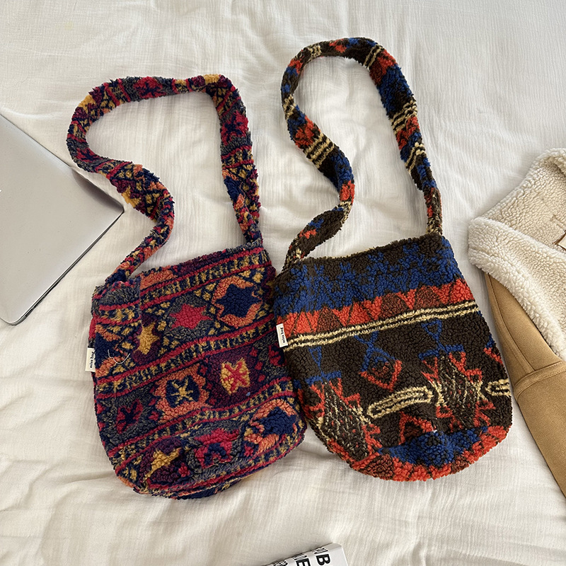 한국 동대문 가을 · 겨울 새 어깨 가방 여성 봉제 양모 스타일리스트 모직 캐주얼 대용량 크로스바디 백