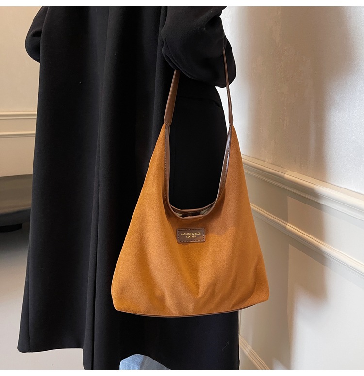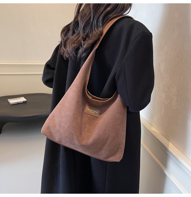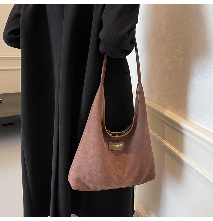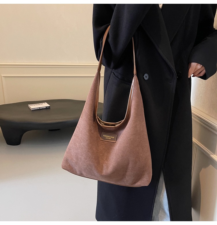 토트 백 여성의 2024 새로운 대용량 통근 가을과 겨울 패션 빈티지 메일러 트렌디 스웨이드 숄더 백
