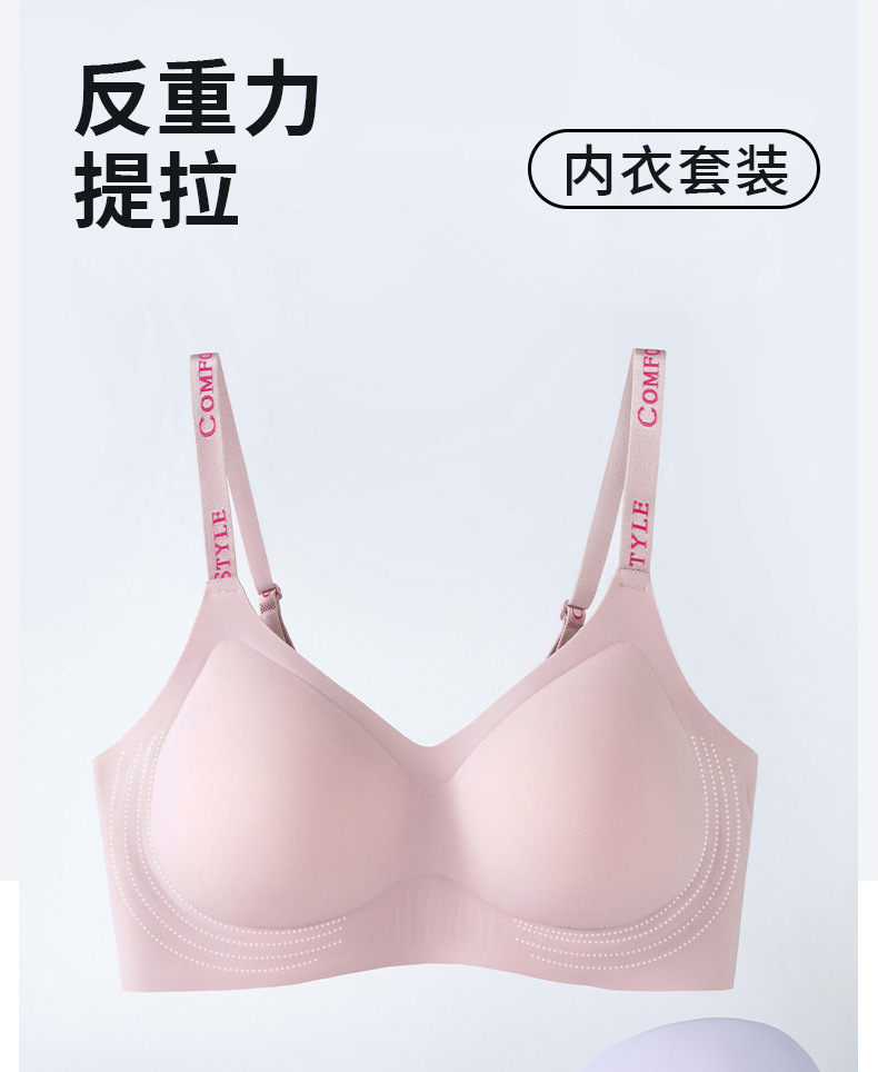 안티 중력 리프팅 속옷 여성의 원피스 원활한 편지 어깨 끈 작은 가슴은 처짐 방지 여성용 브래지어 세트 모았습니다.