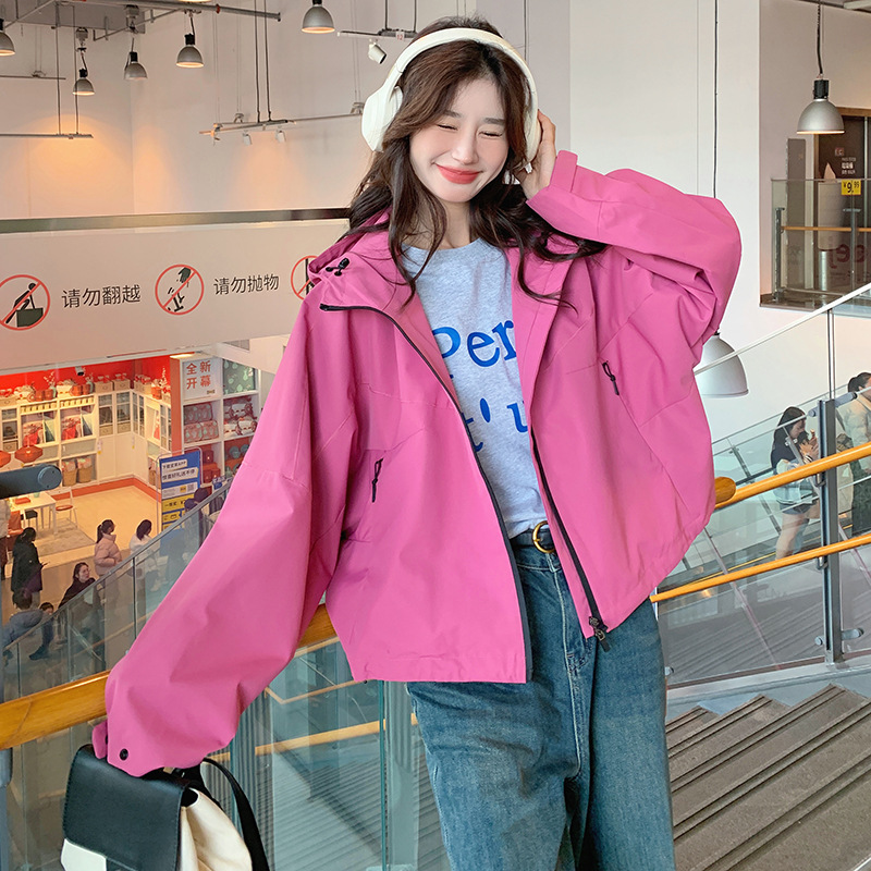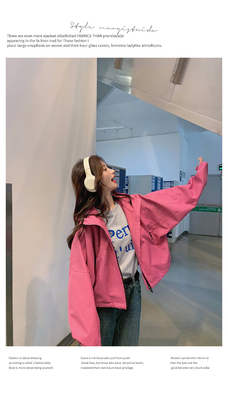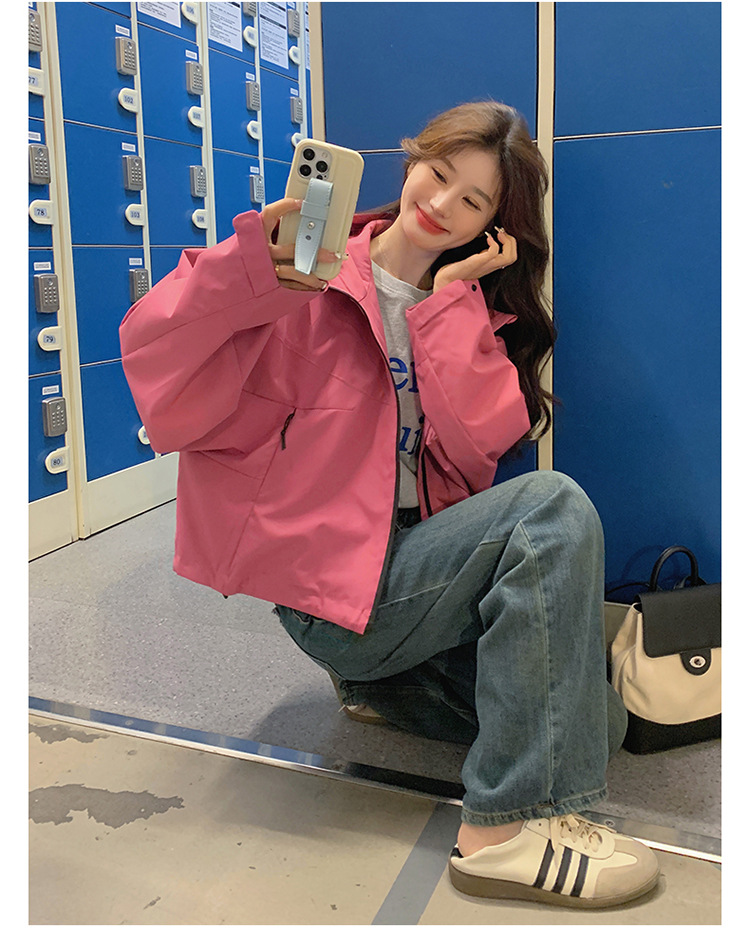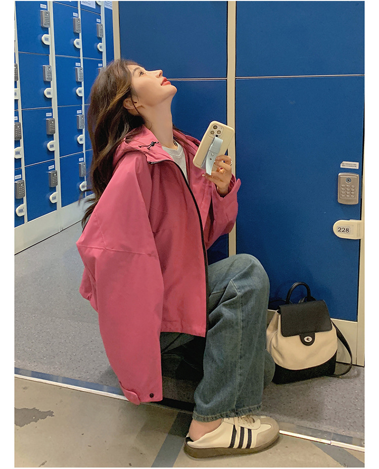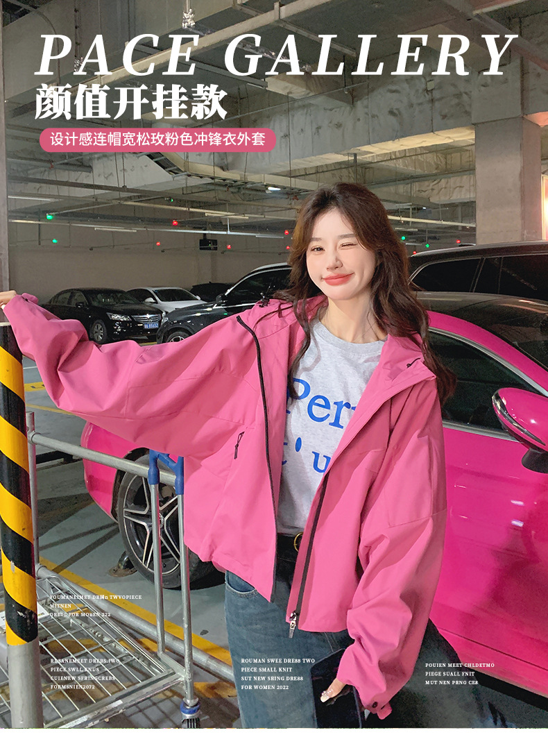 진짜 샷 로즈 핑크 후드 폭행 재킷 여성의 2024 가을 새로운 작은 느슨한 캐주얼 재킷 탑