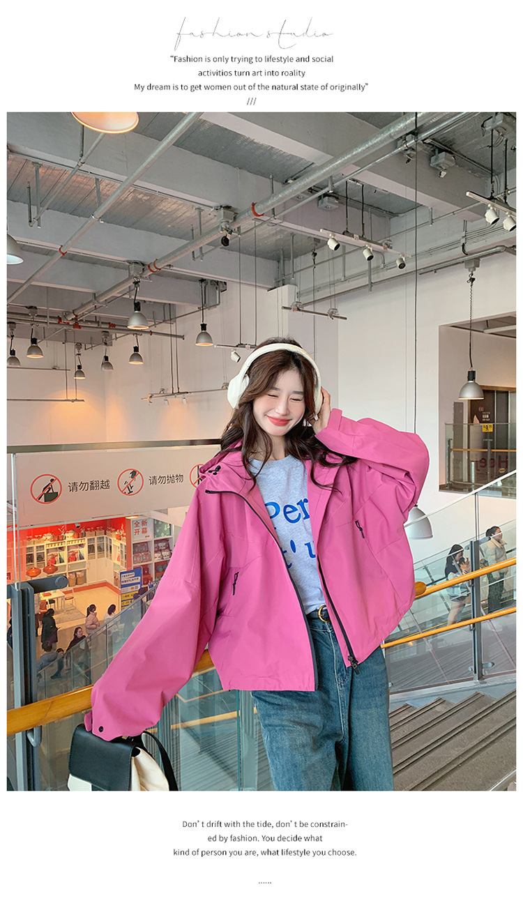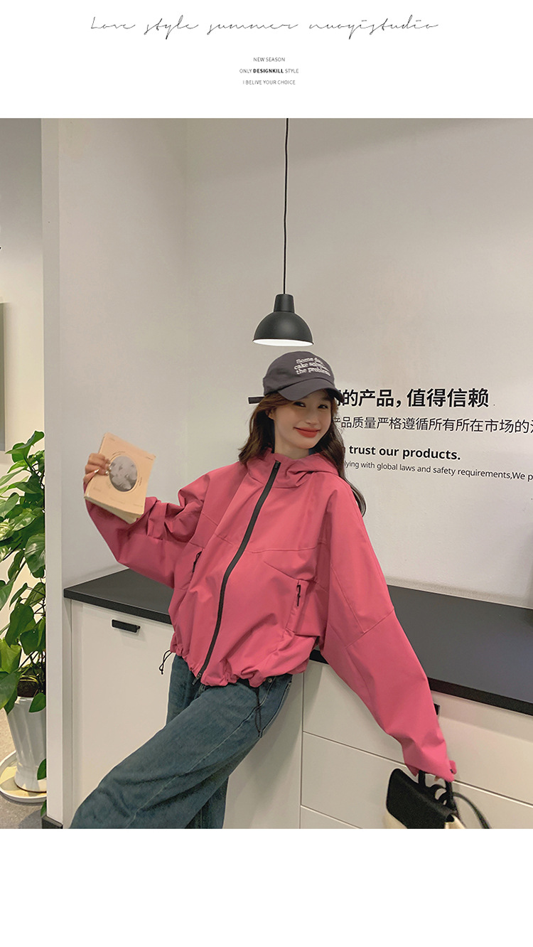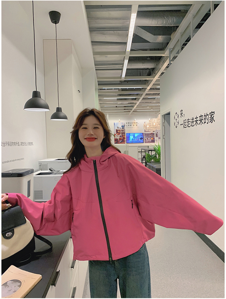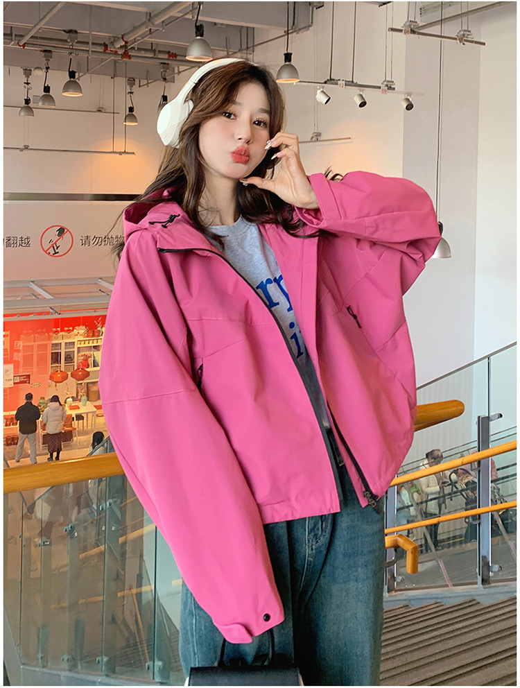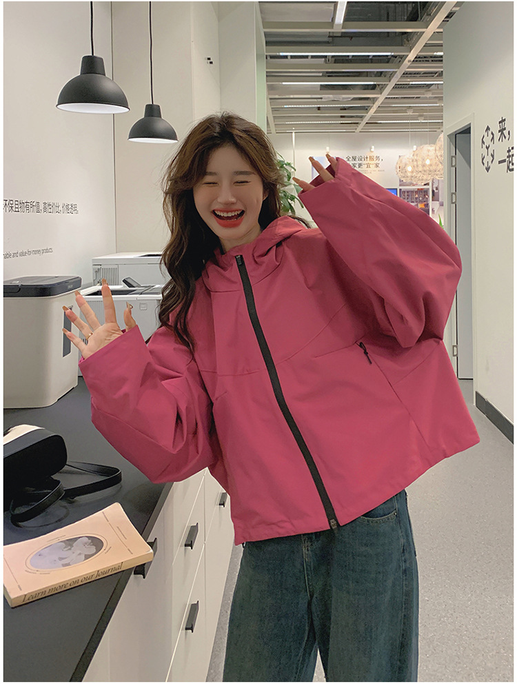 진짜 샷 로즈 핑크 후드 폭행 재킷 여성의 2024 가을 새로운 작은 느슨한 캐주얼 재킷 탑