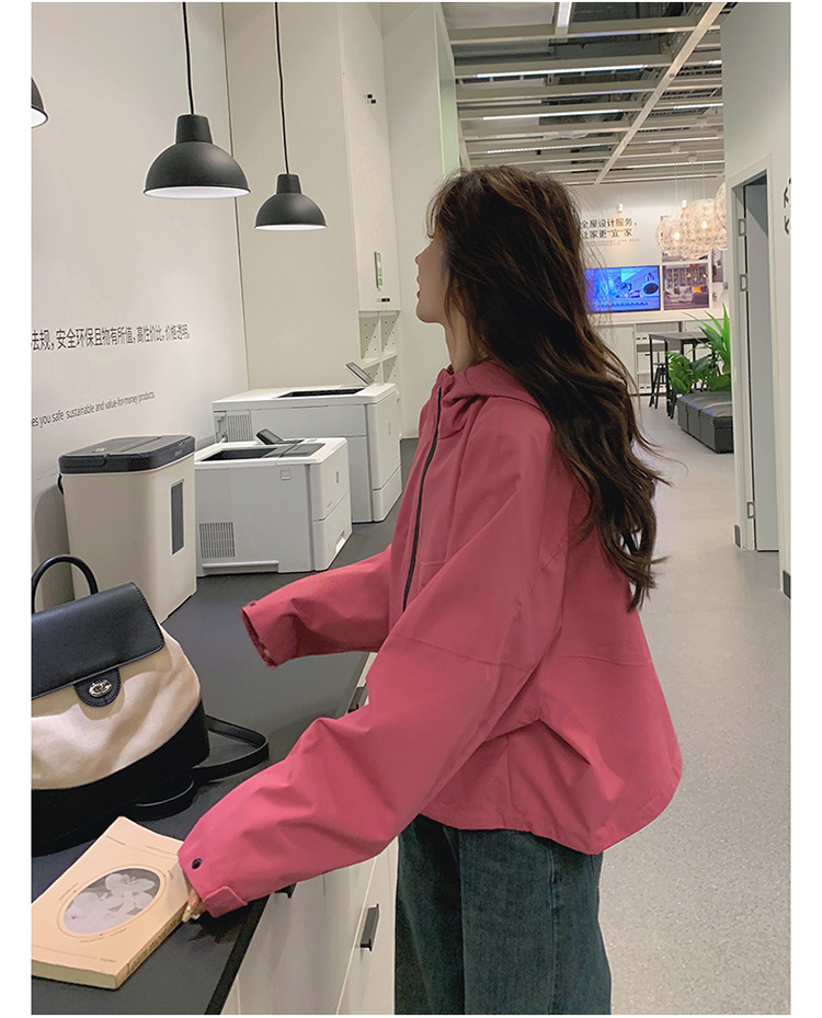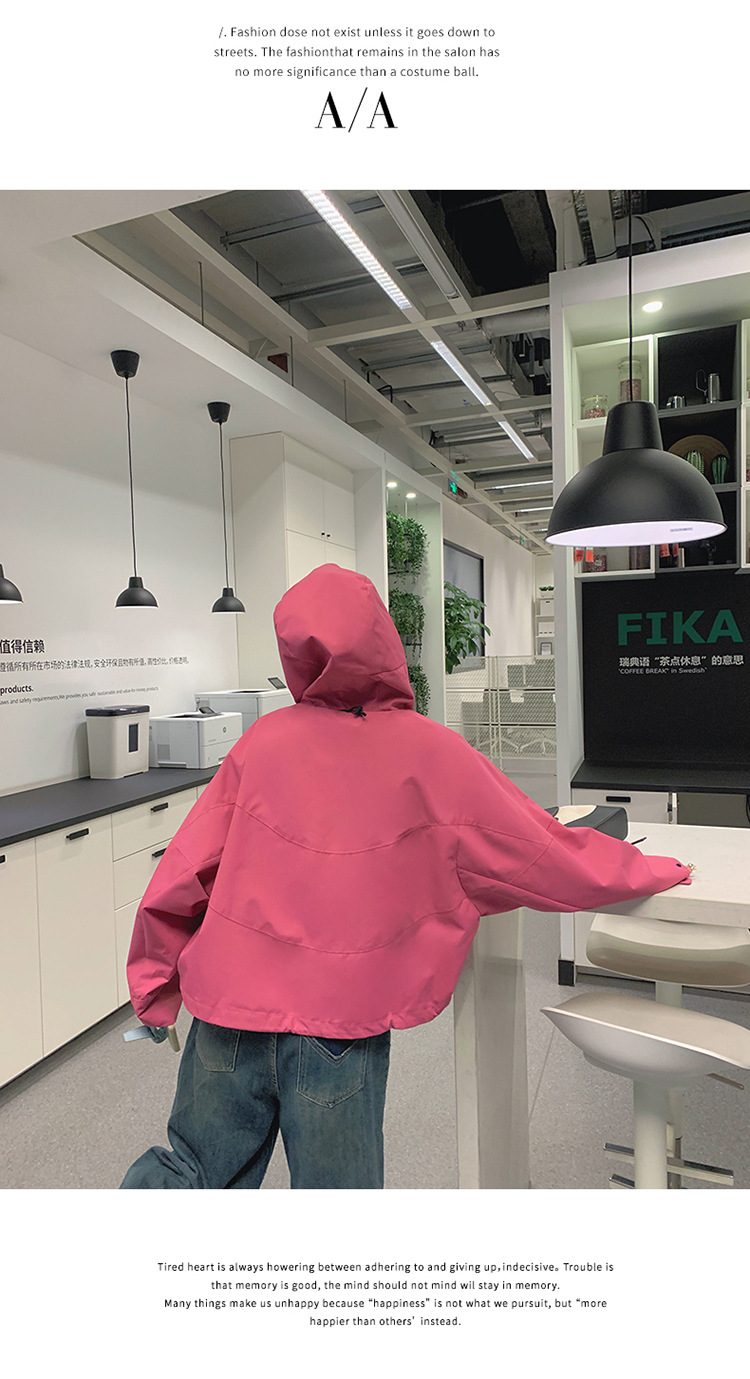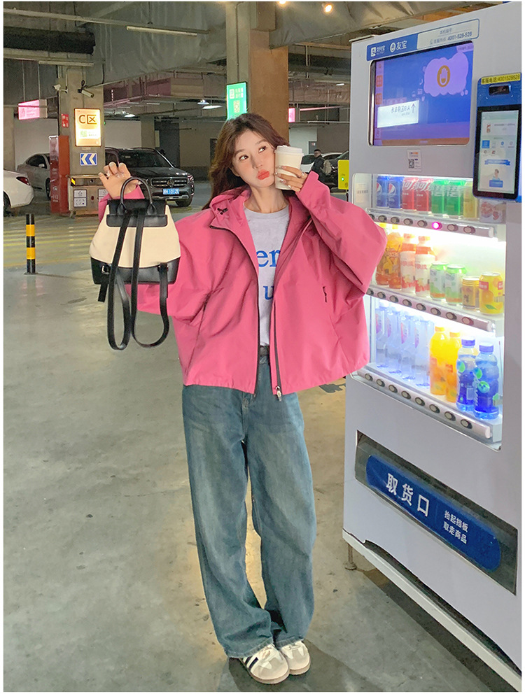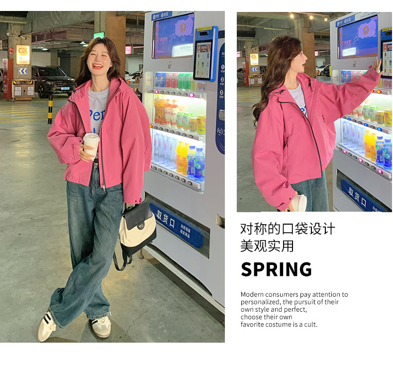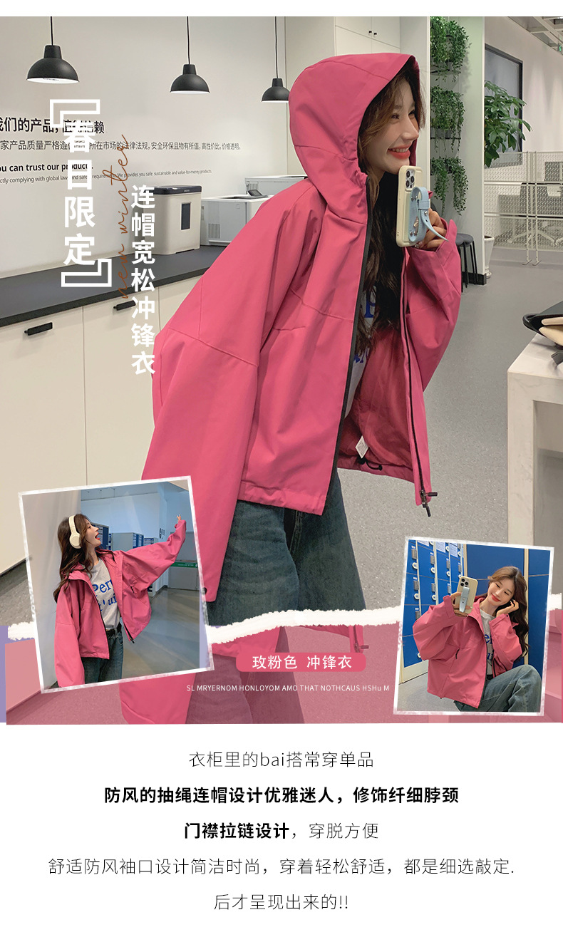 진짜 샷 로즈 핑크 후드 폭행 재킷 여성의 2024 가을 새로운 작은 느슨한 캐주얼 재킷 탑스토어 가기