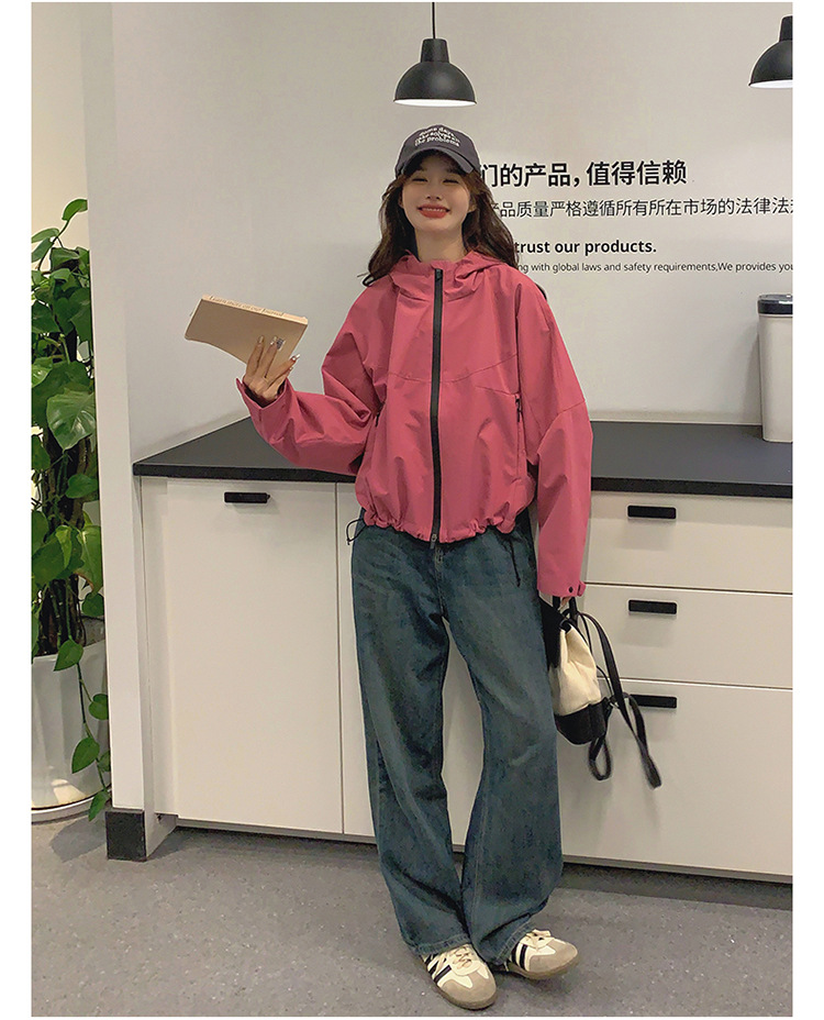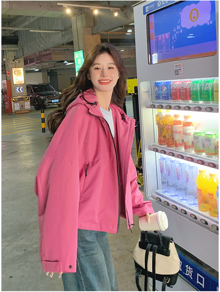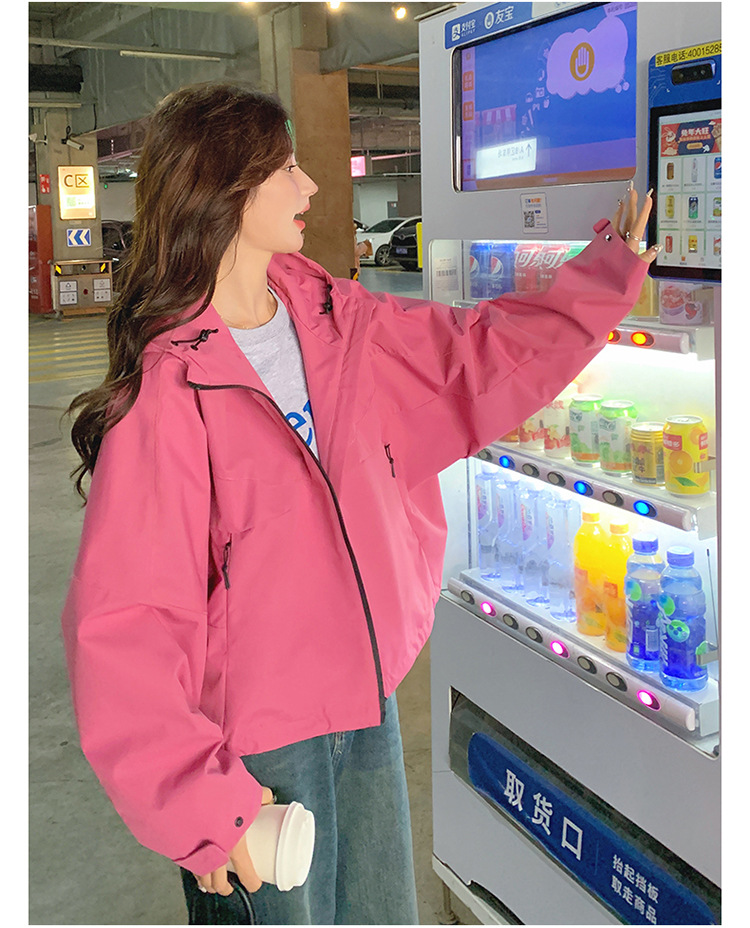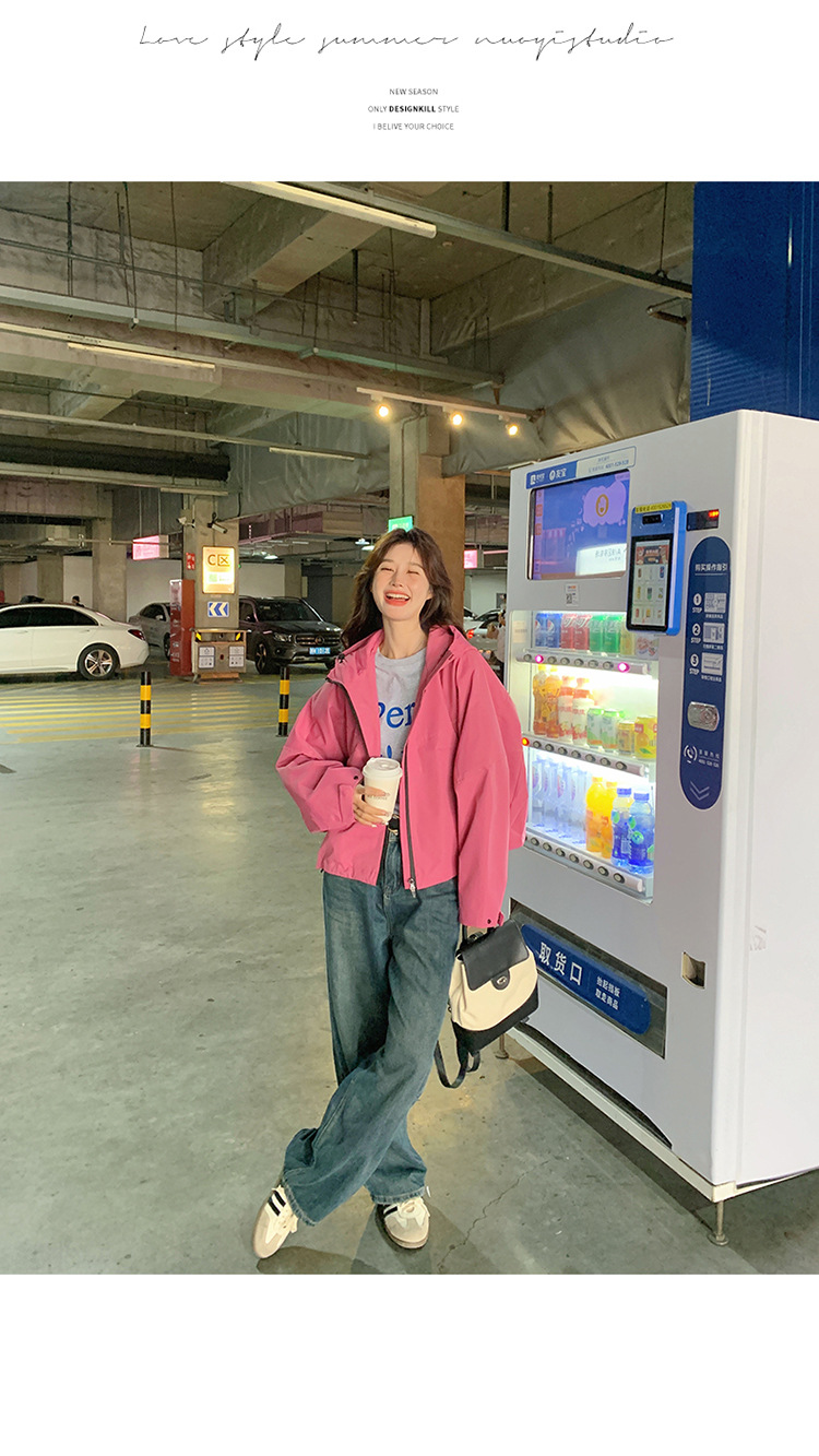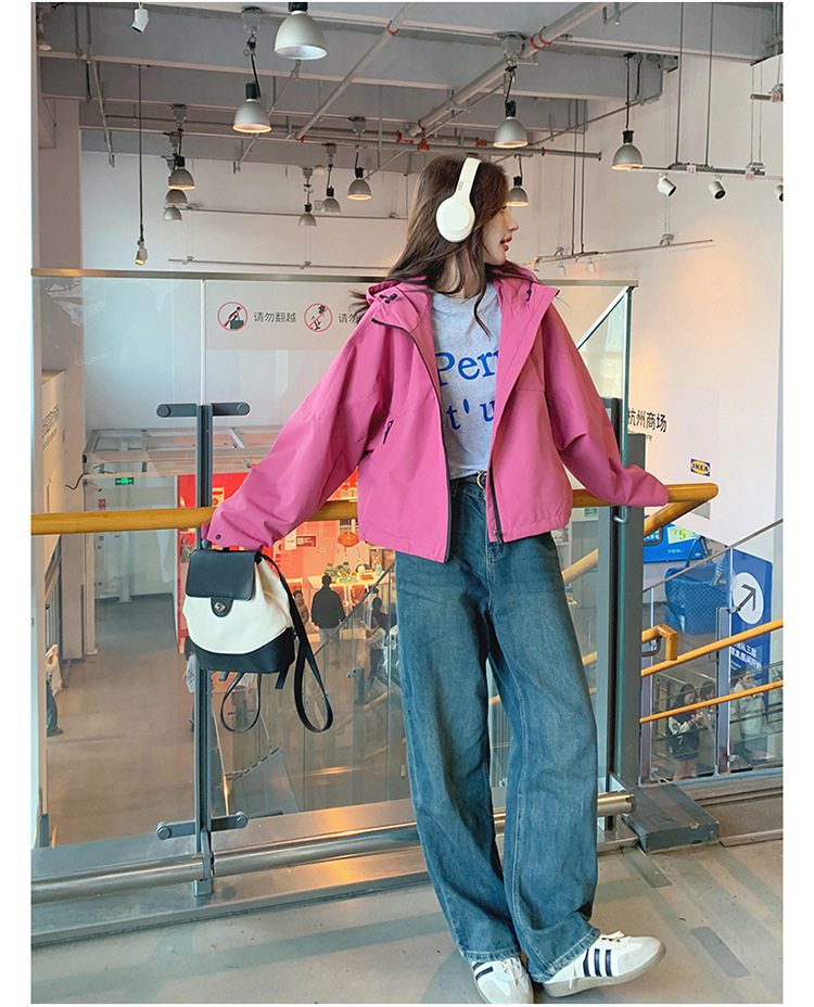 진짜 샷 로즈 핑크 후드 폭행 재킷 여성의 2024 가을 새로운 작은 느슨한 캐주얼 재킷 탑스토어 가기