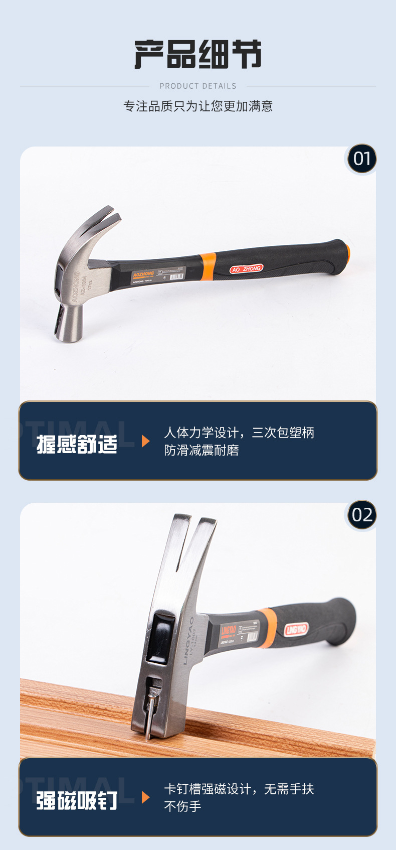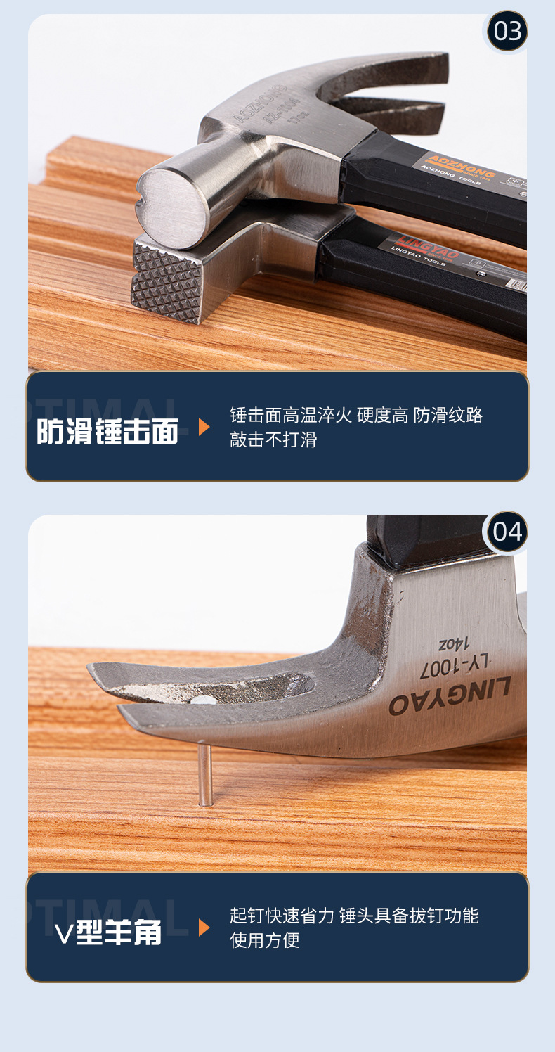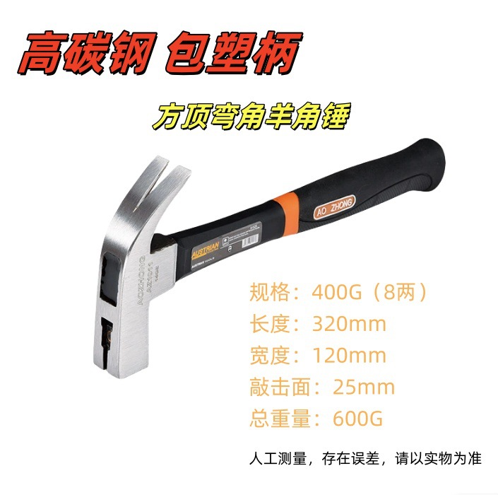 발톱 해머 높은 탄소 강철 발톱 해머 미끄럼 방지 충격 흡수 사이트 목공 장식 플라스틱 손잡이 클로 해머 하드웨어 도구스토어 가기