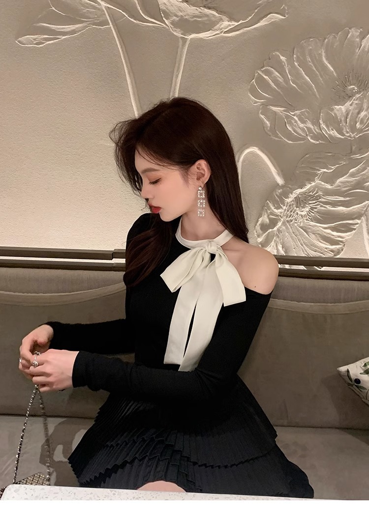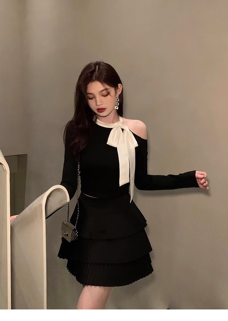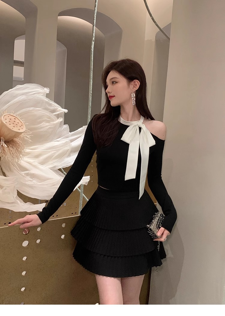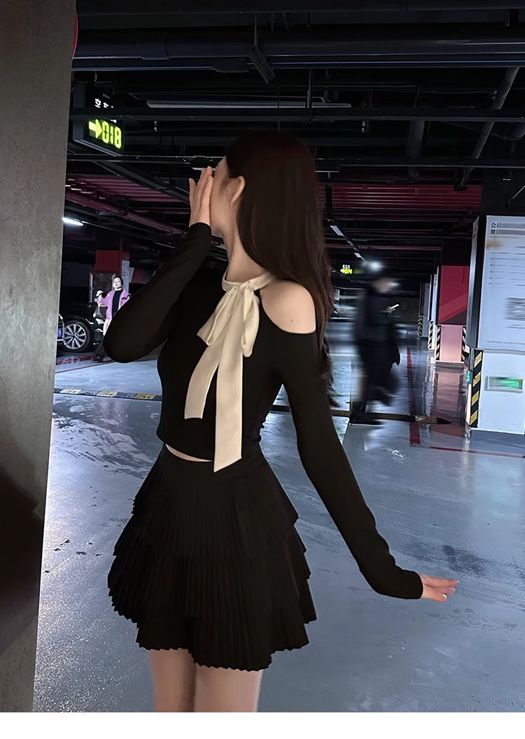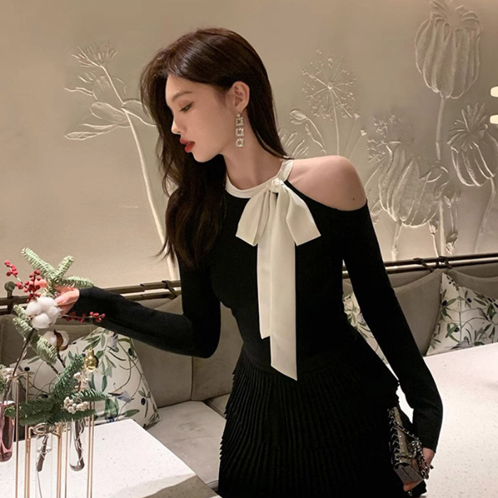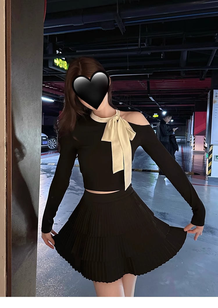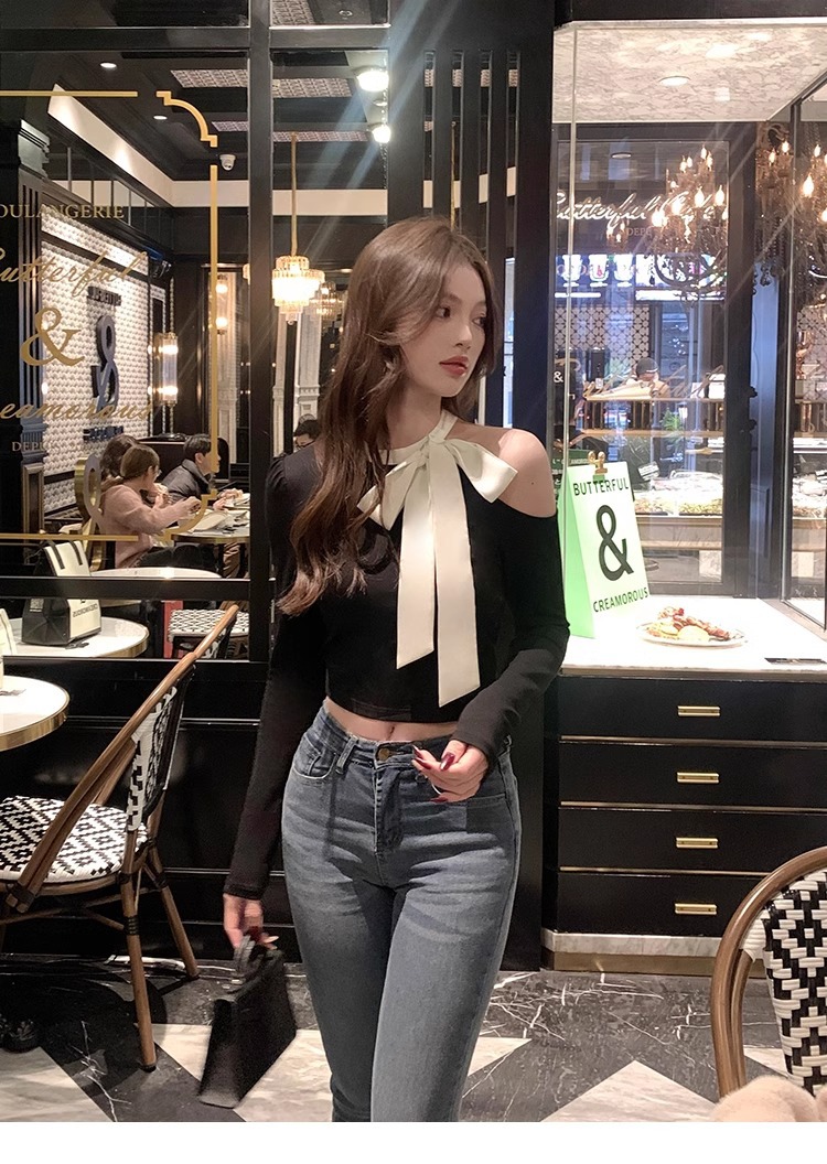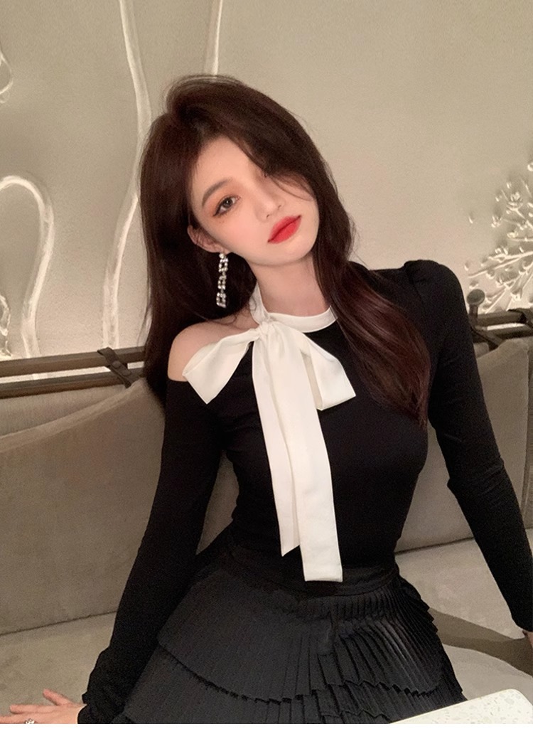공식 그림 실제 가격 봄과 가을 어깨 빛 성숙한 최고 여성 디자인 센스 짧은 슬림 핏 활 긴팔 티셔츠 작은 셔츠