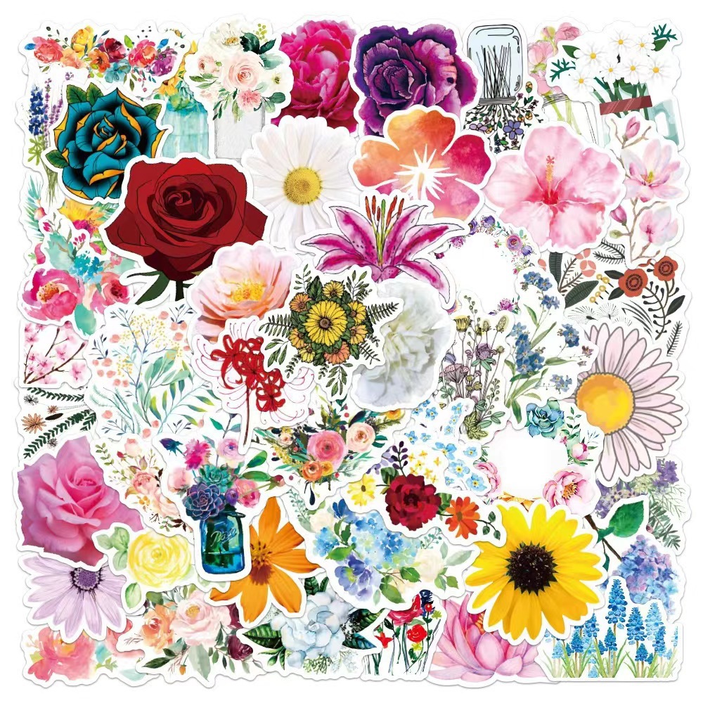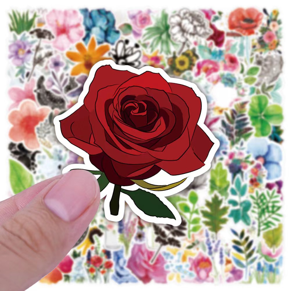 100 국경 새 식물 꽃 낙서 스티커 장식 수하물 노트북 방수 소재 스티커