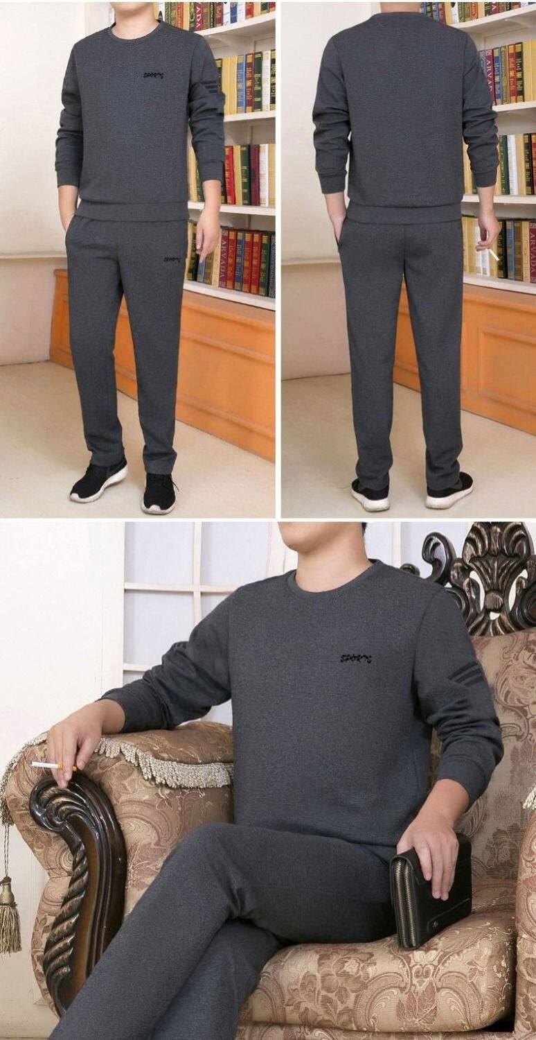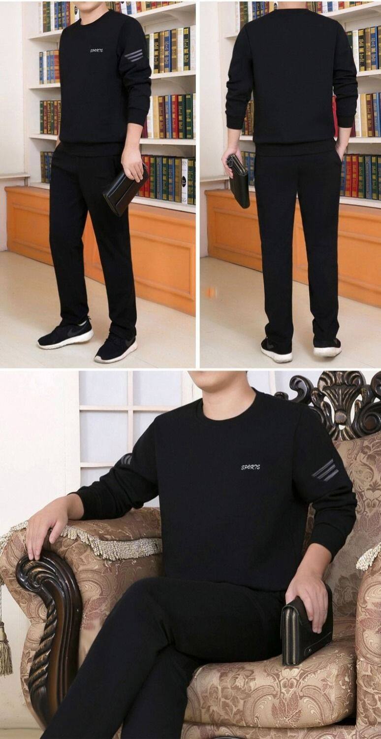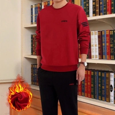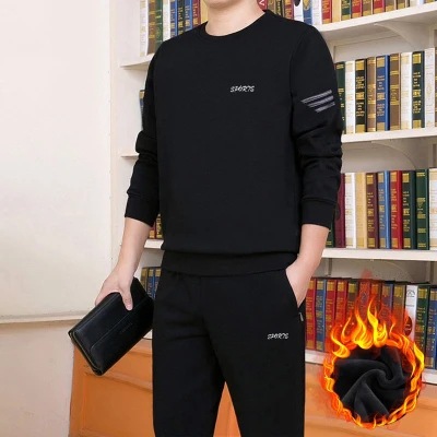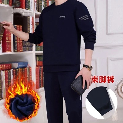 가을 겨울 스포츠 세트 남자 면 캐주얼 기모 투피스 세트 2024 남자 중년 라운드 넥 세트스토어 가기