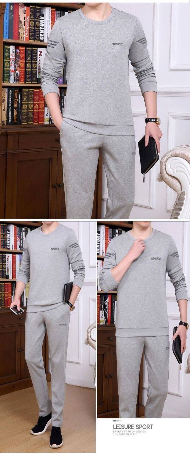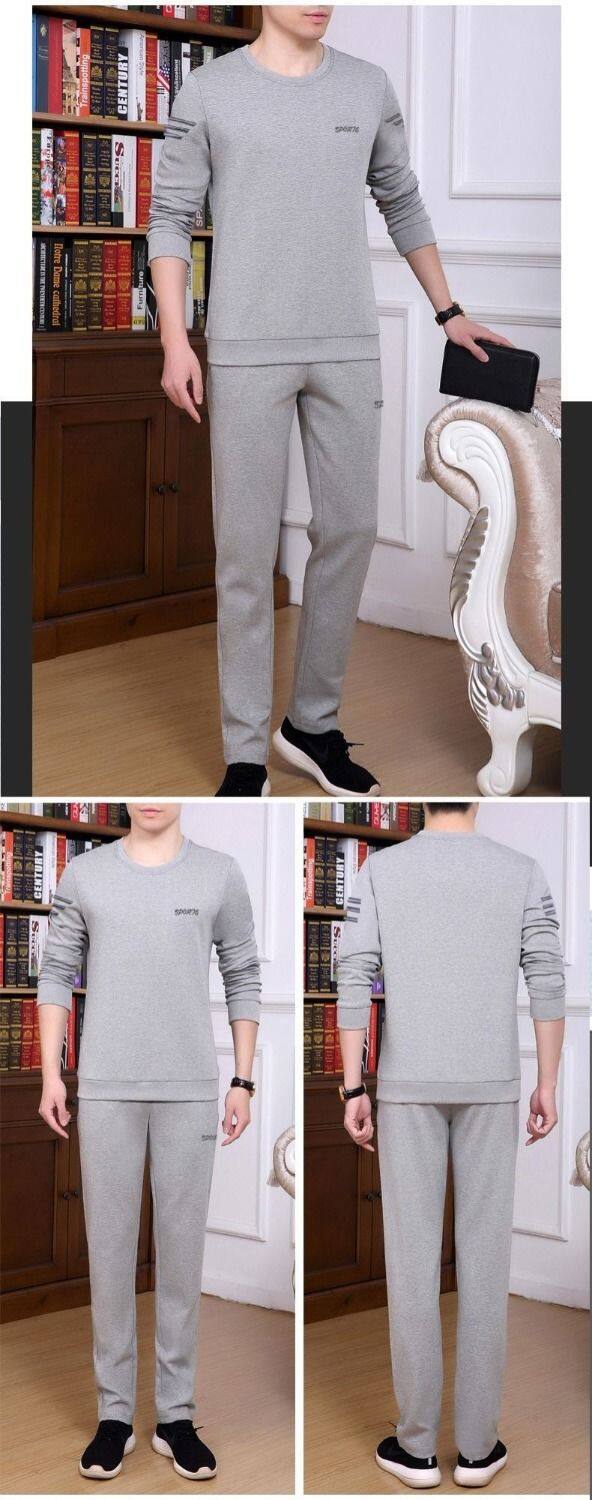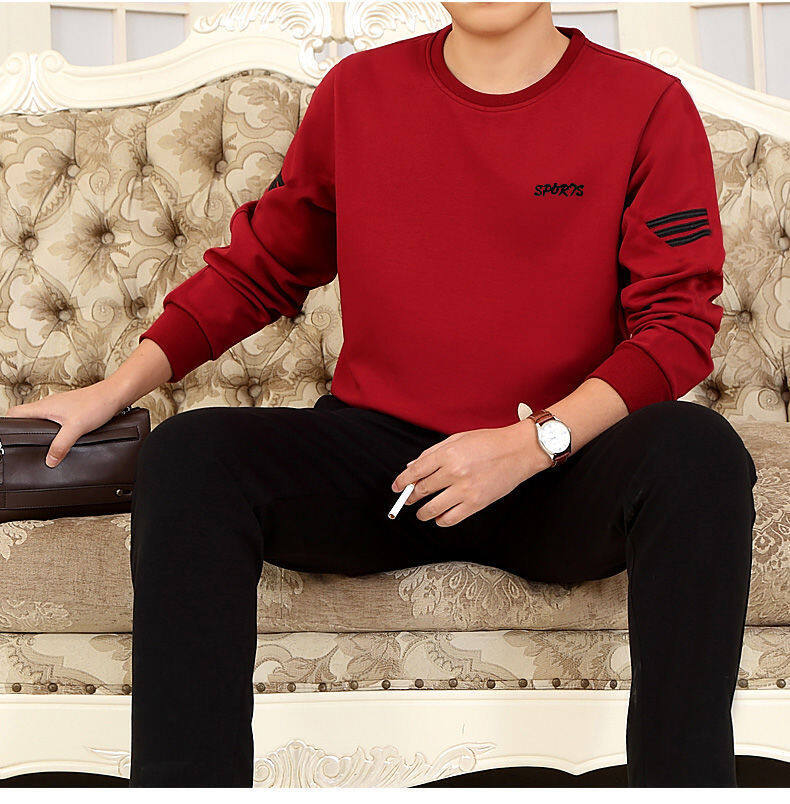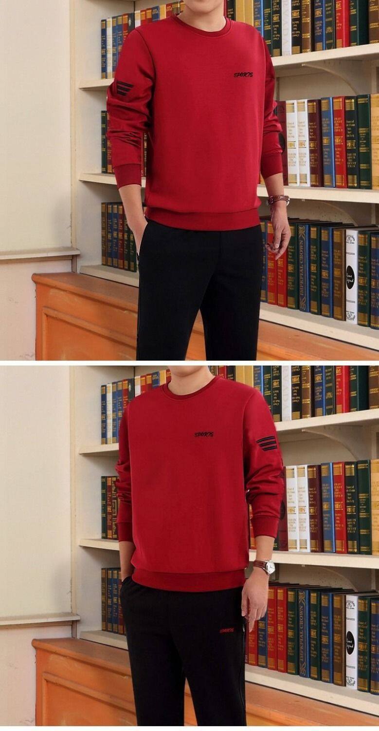 가을 겨울 스포츠 세트 남자 면 캐주얼 기모 투피스 세트 2024 남자 중년 라운드 넥 세트스토어 가기