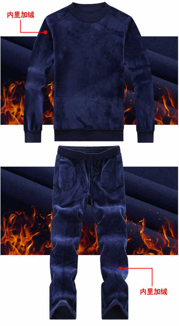 가을 겨울 스포츠 세트 남자 면 캐주얼 기모 투피스 세트 2024 남자 중년 라운드 넥 세트