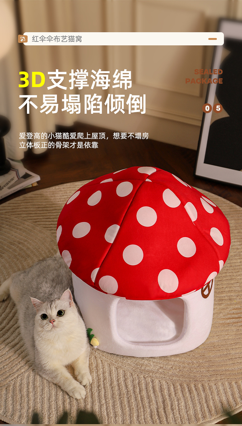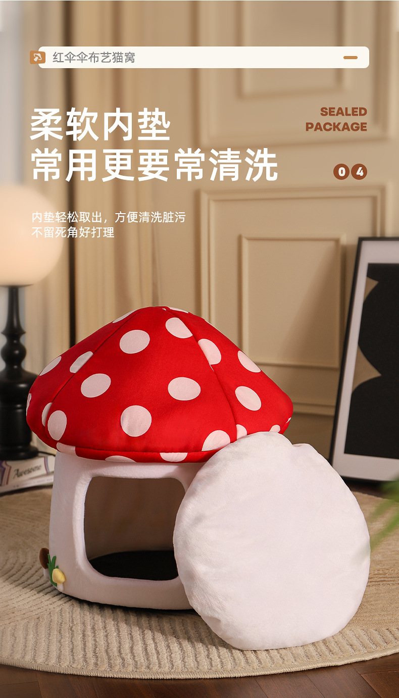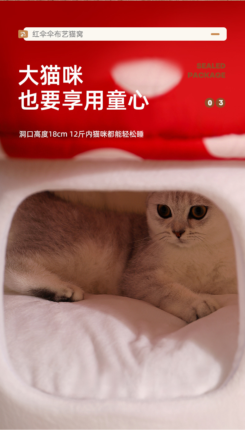 • 빨간 우산 우산 패브릭 고양이 둥지