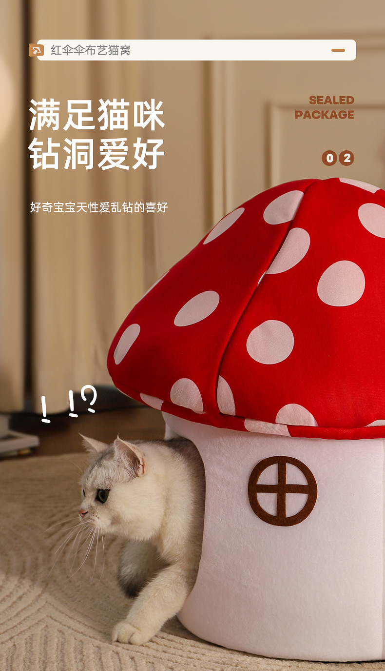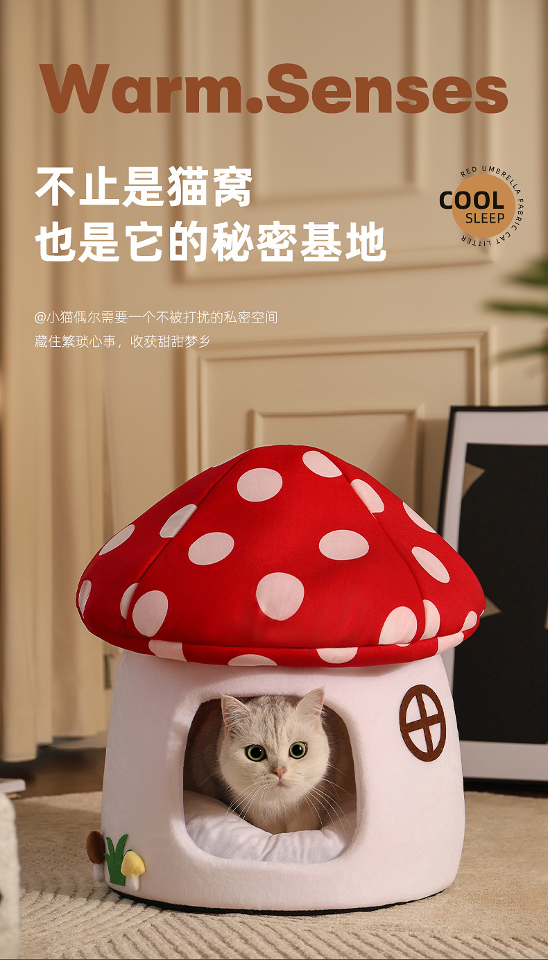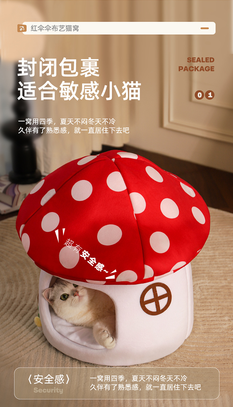 • 빨간 우산 우산 패브릭 고양이 둥지