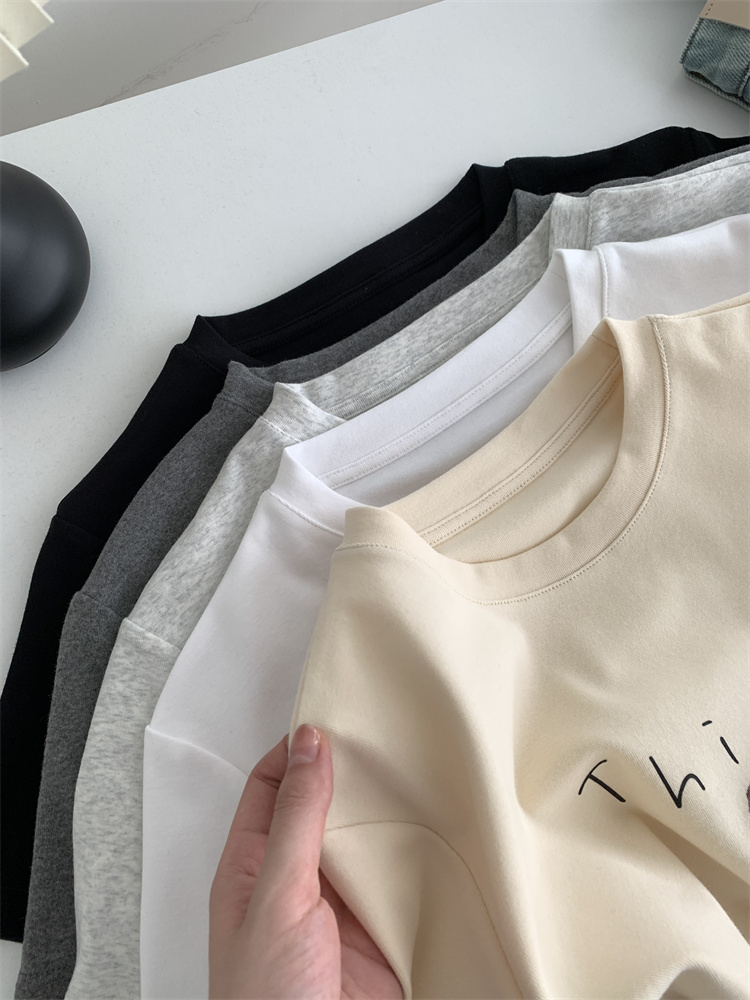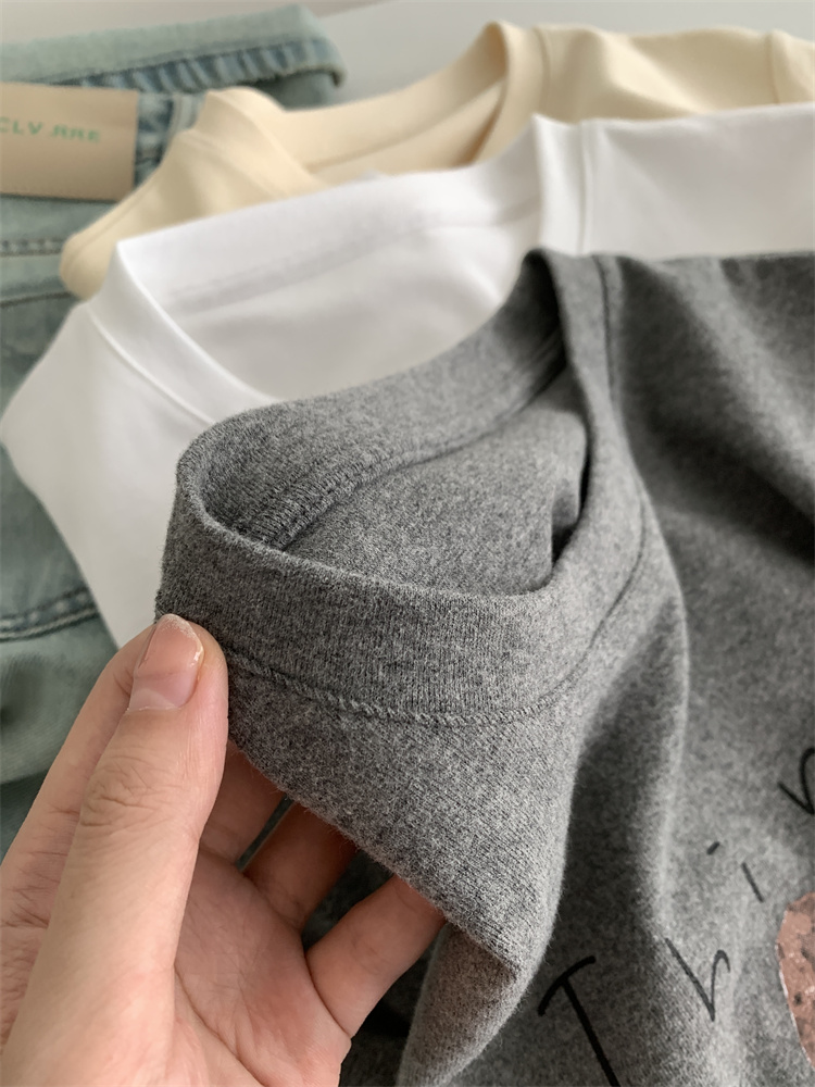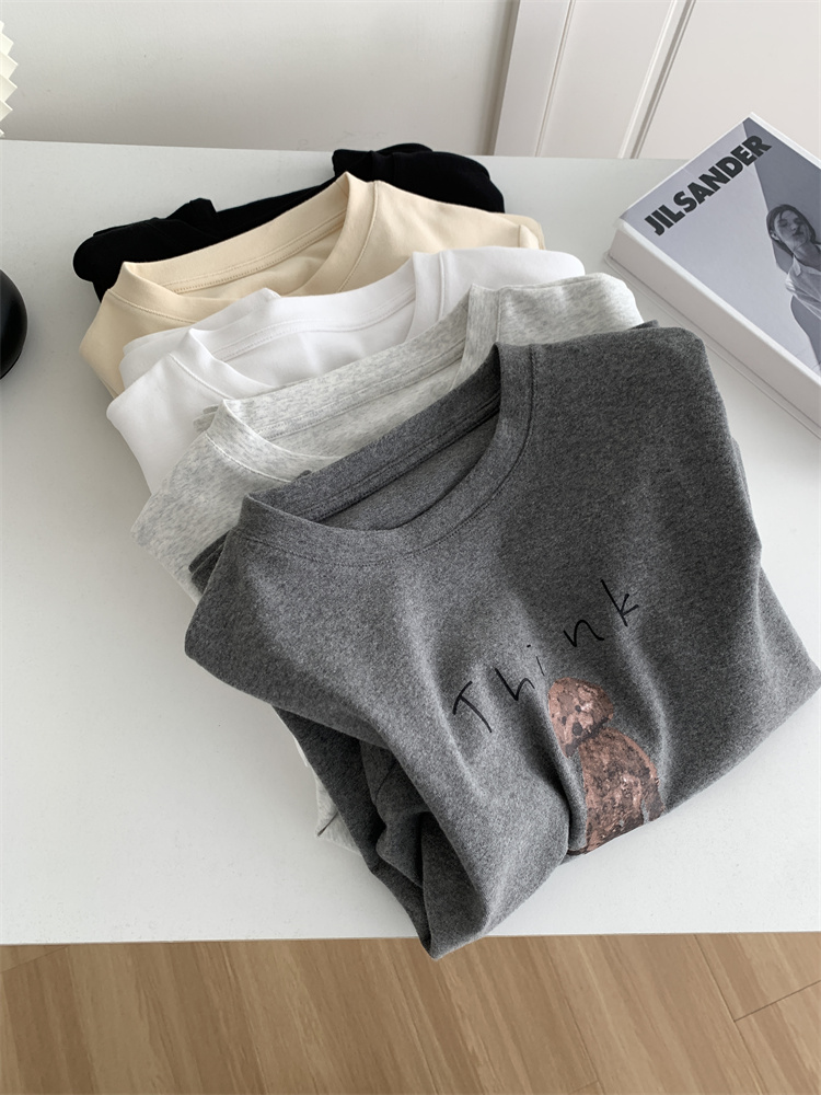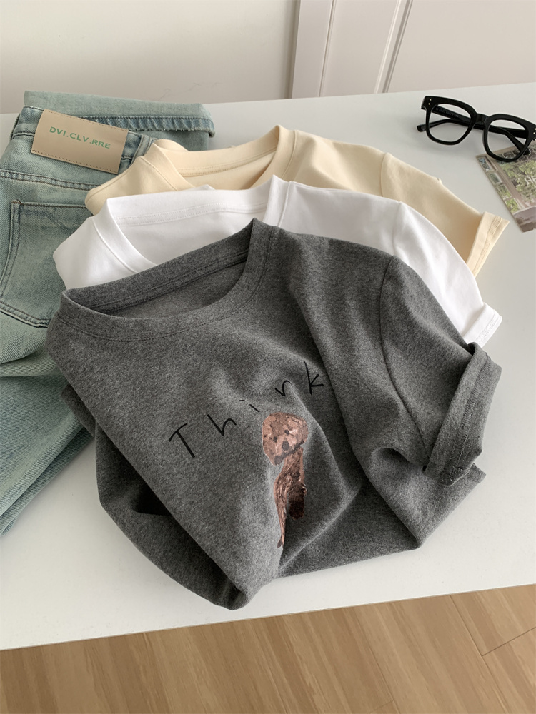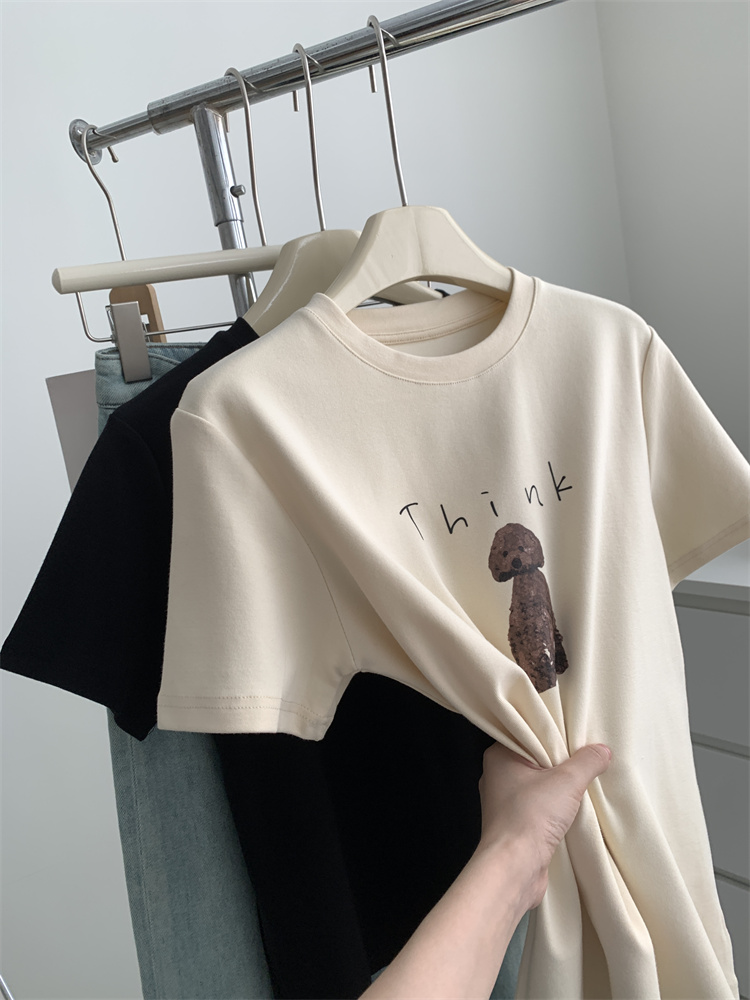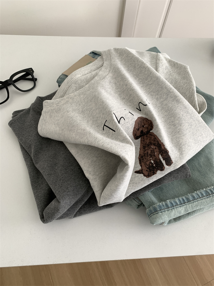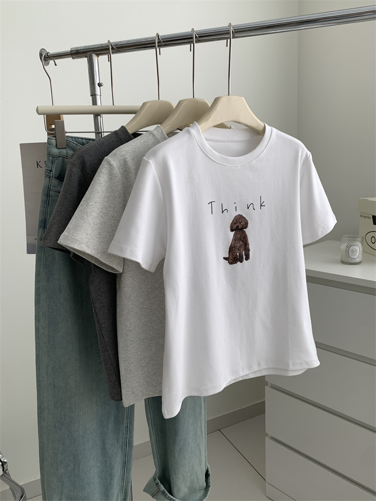 이른 가을 새 만화 강아지 샌딩 티셔츠 여성용 느슨한 캐주얼 통근 모두 두꺼운 소프트 왁스 반소매 베이스 셔츠