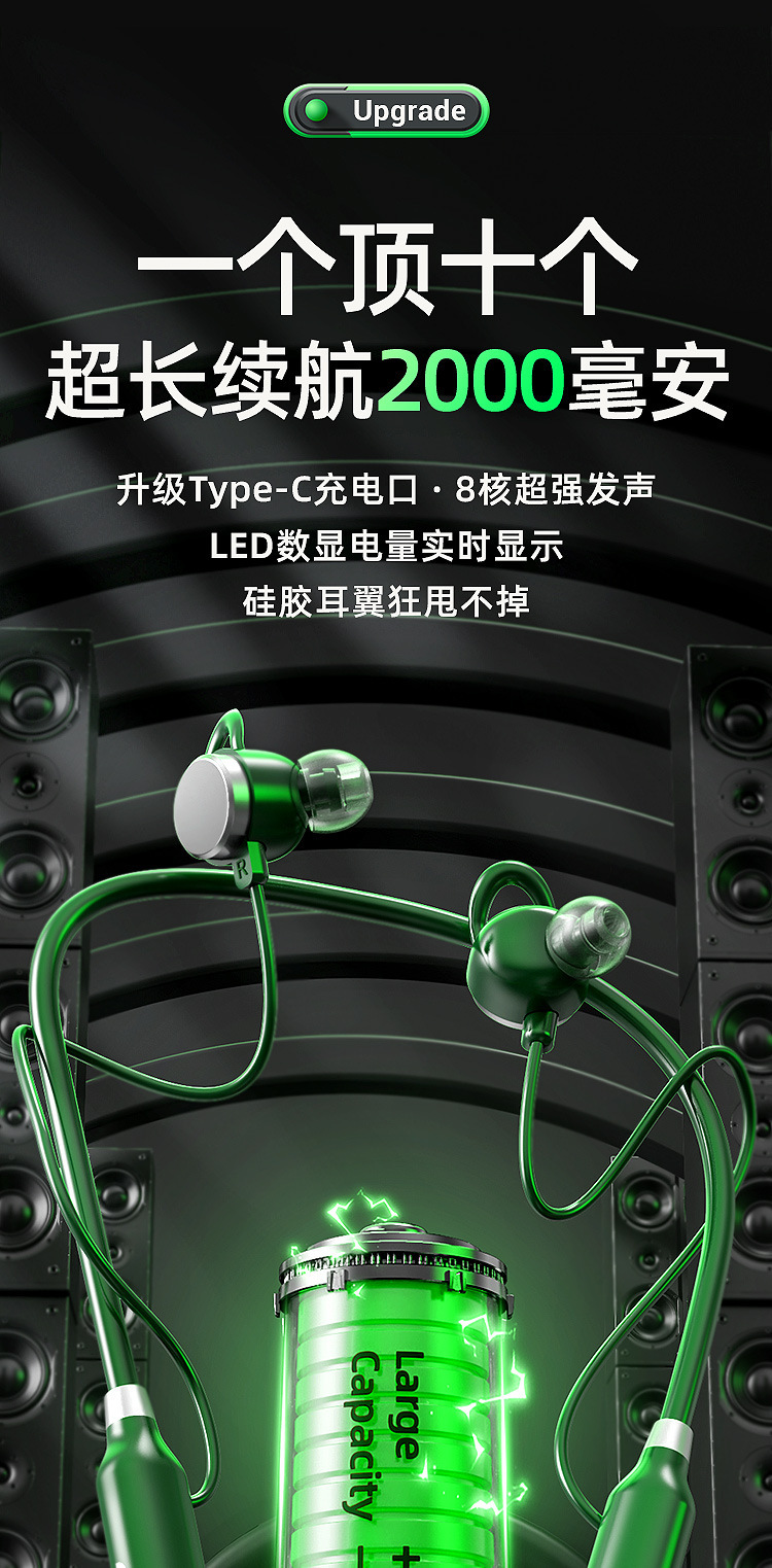 무선 블루투스 헤드셋 BT-7 스포츠 목 유형 삽입 가능한 카드 블랙 기술 디지털 디스플레이 소음 감소 국경 간 공장 새로운스토어 가기