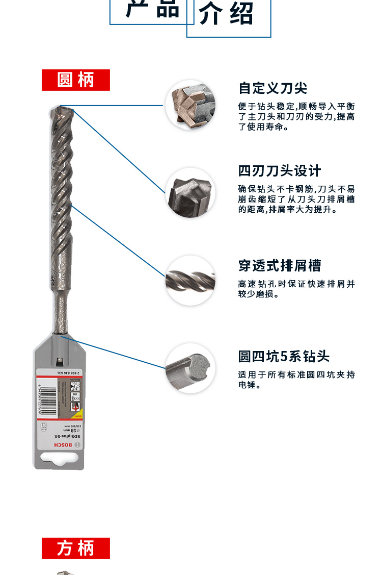 Bosch 5 시리즈 라운드 생크 4 피트 전기 해머 타악기 드릴 4 블레이드 드릴 철근 콘크리트 벽을 통해. 제조업체의 배치스토어 가기