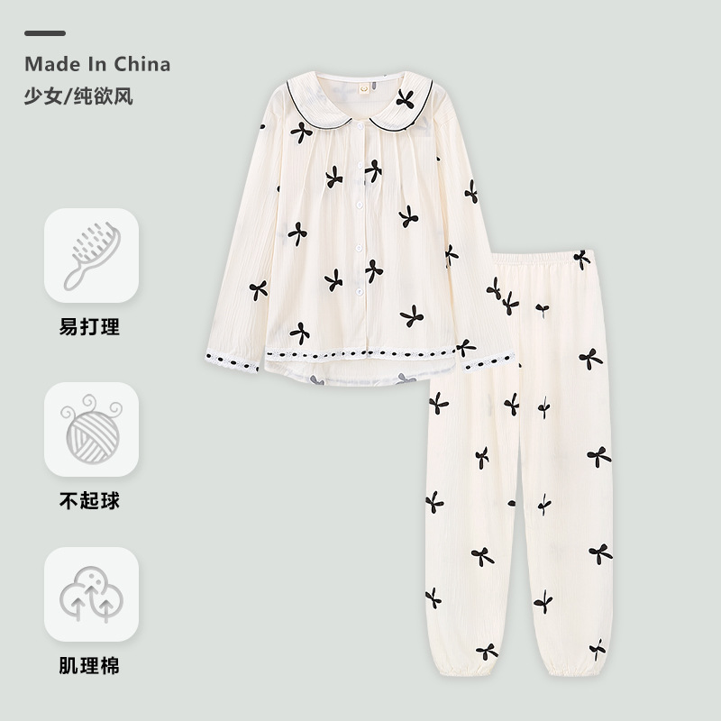 귀여운 소녀 잠옷 봄과 가을 순수한 욕망 활 카디건 주름 면화 바지 세트 외부 착용 홈 옷스토어 가기