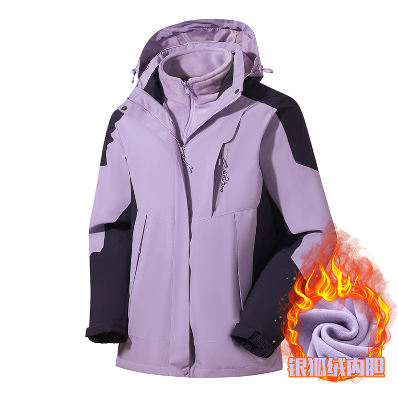 가을과 겨울 커플의 실버 폭스 벨벳 라이너 충전 옷 3 대 1 분리 가능한 옷 남성용 방수 방풍 통기성 따뜻한